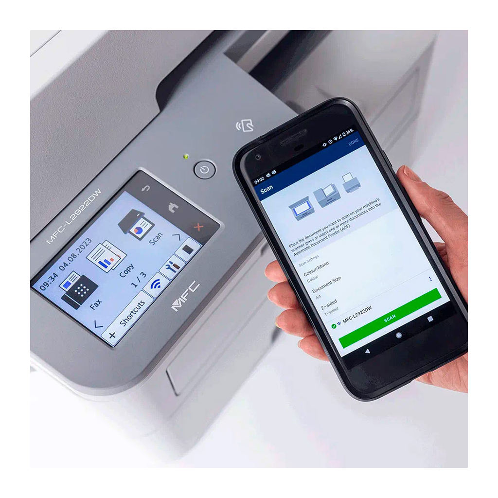 Багатофункціональний пристрій Brother MFCL2922DWYJ1 – це ідеальне рішення для малого офісу, яке поєднує в собі функції лазерного принтера, сканера та копіра. Завдяки своїй швидкості друку до 32 сторінок на хвилину та високій роздільній здатності 1200 х 1200 dpi, цей пристрій забезпечує якісні документи та ефективну роботу. Його можливості включають двосторонній друк, що дозволяє заощаджувати папір, а також функцію друку без полів для професійного вигляду ваших матеріалів.