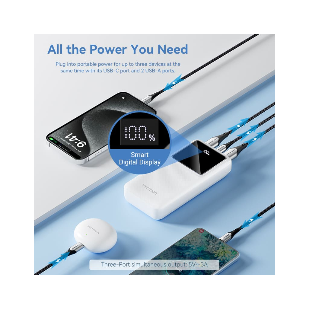 Батарея універсальна Vention 20000 mAh 22.5W Black LED Display Type (FHLB0) – це потужний та надійний пристрій для зарядки ваших гаджетів. З ємністю 20000 mAh, вона забезпечує тривалу роботу без підзарядки. Джерело заряду батареї може бути як USB, так і мережа 220 В, що робить її універсальною для використання вдома та в дорозі.