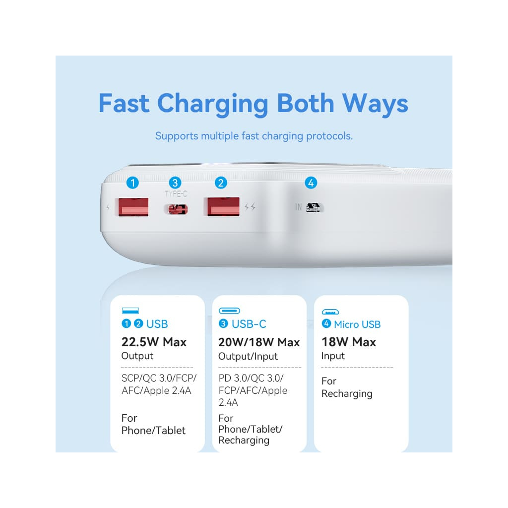 - Максимальна вихідна потужність: 22.5 Вт, вихідний струм – 3 A, що забезпечує швидку зарядку.