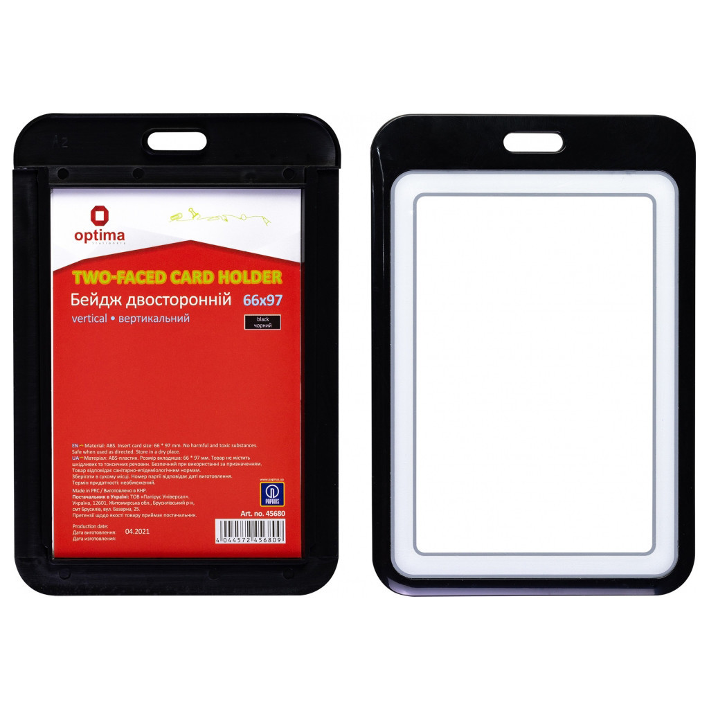 Бейдж Optima преміальний вертикальний 66х97 мм двосторонній, чорний (O45680) – це ідеальне рішення для професіоналів, які цінують якість та стиль. Цей бейдж виготовлений з преміум-матеріалів, що забезпечують довговічність та естетичний вигляд. Розмір вкладки 66х97 мм дозволяє розмістити всю необхідну інформацію, а двобічний дизайн робить його зручним у використанні.