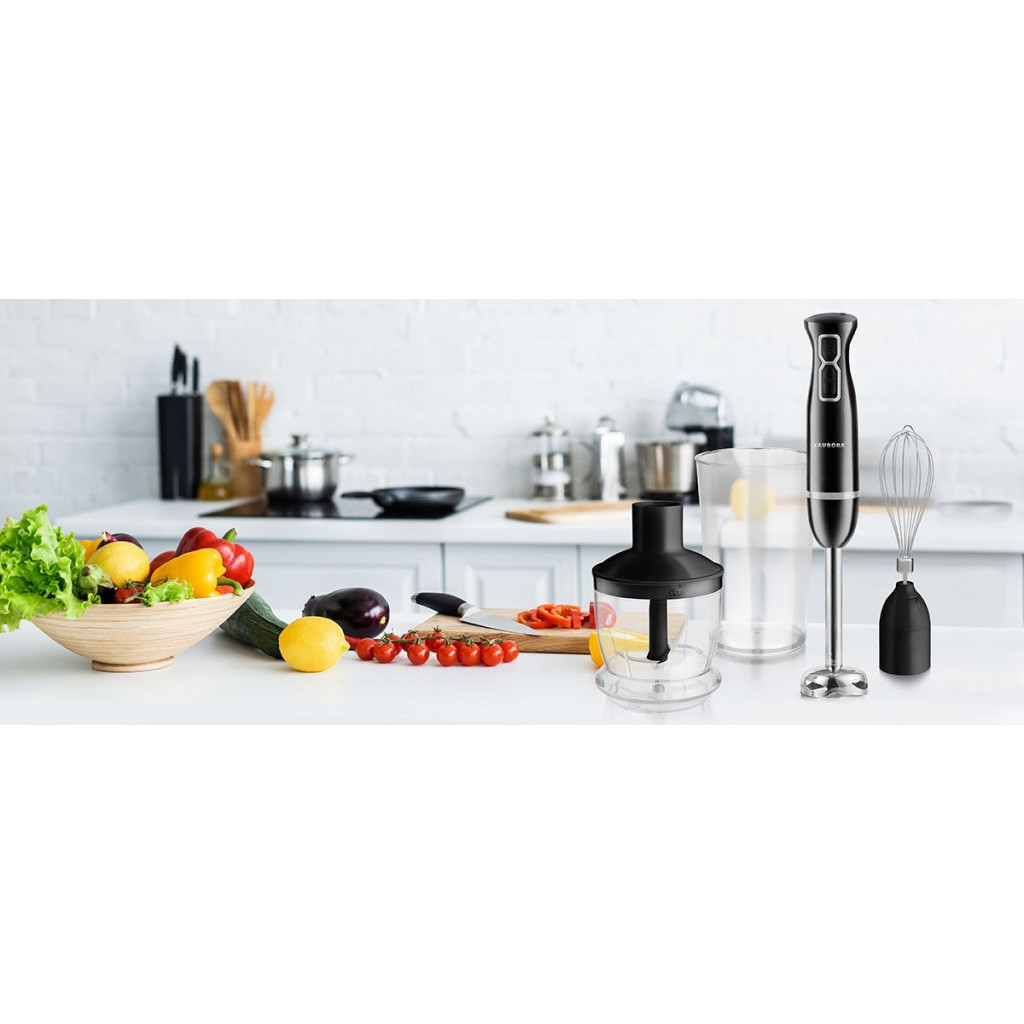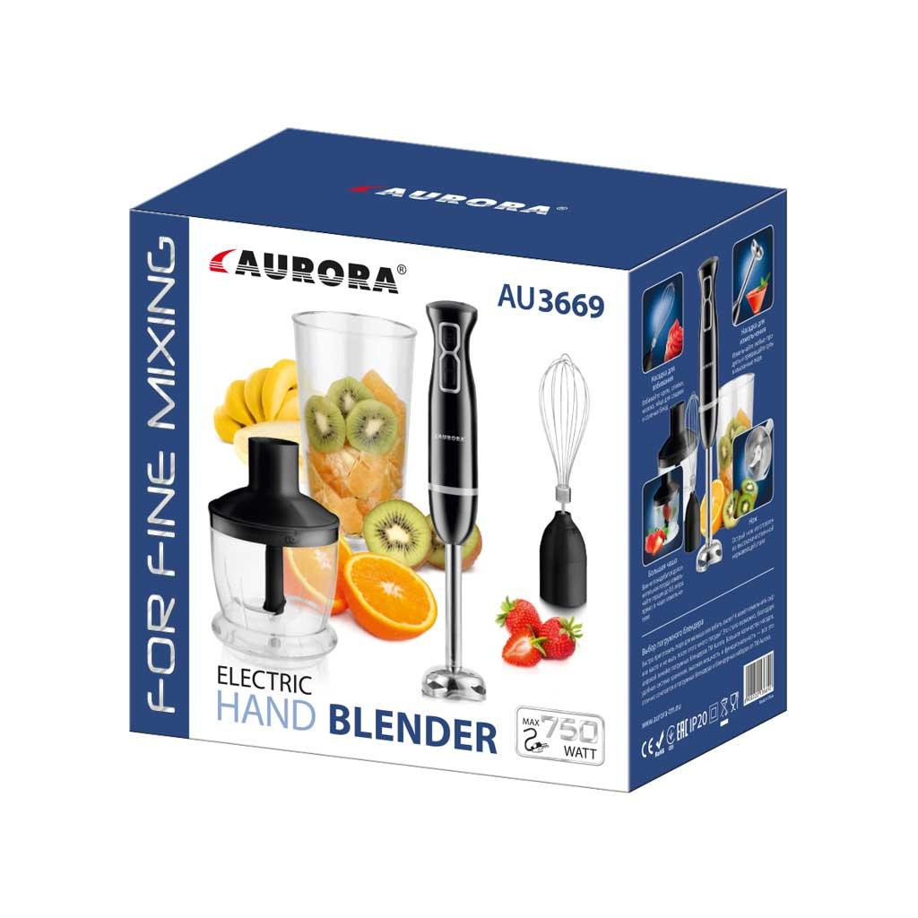 Блендер Aurora AU 3669 представлений у вигляді занурювального ручного пристрою у звичному всім класичному форматі. Зручна рукоять з ергономічно розташованими перемикачами, чорно-біле поєднання, приємні фактури – все це стало перевагами однієї оболонки, яка втілила в собі найкраще зі свого класу пристроїв. При цьому модель дуже мінімалістична зовні, за рахунок чого вписується у будь-який концепт облаштування кухонного простору.
