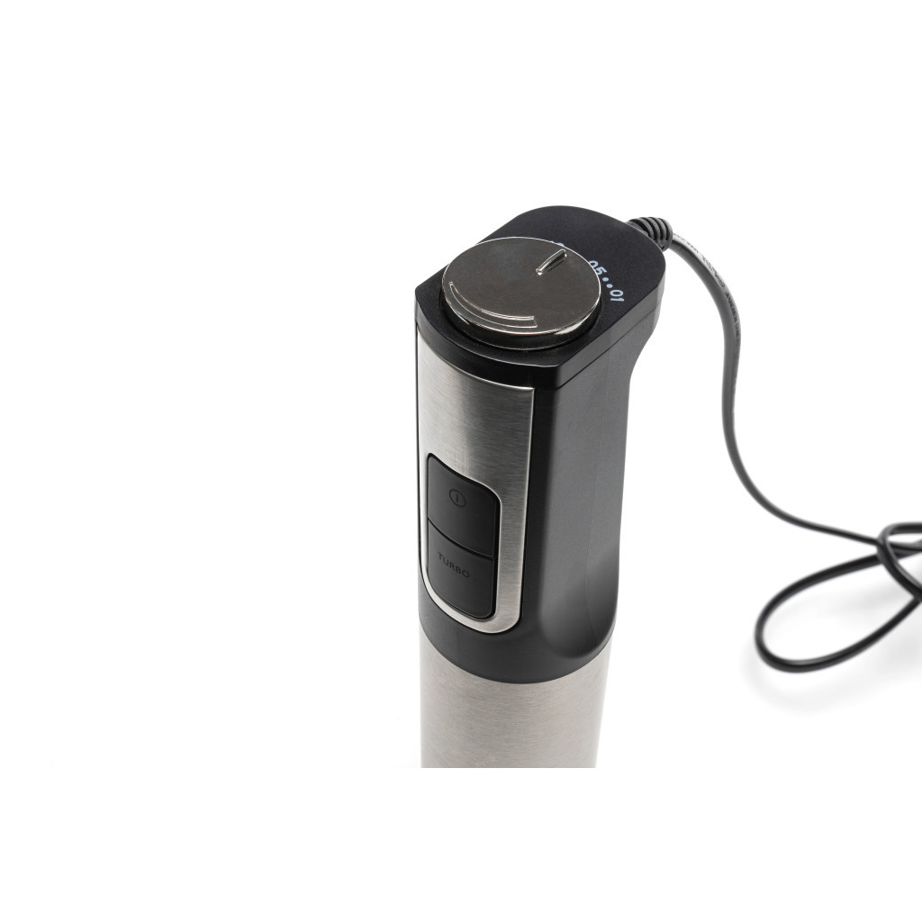 Ніжка блендера виготовлена з нержавіючої сталі, що гарантує його міцність і стійкість до корозії. Корпус складається з комбінації нержавіючої сталі та пластика, що забезпечує зручність у використанні та довговічність. Леза також виготовлені з нержавіючої сталі, забезпечуючи оптимальну якість подрібнення. 4-пелюсткове лезо з нержавіючої сталі забезпечує рівномірне та ефективне змішування.