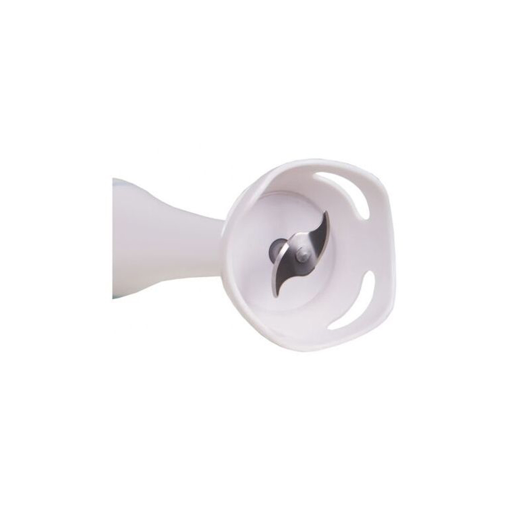 Ергономічна ручка сприяє максимальній зручності при використанні блендера. Кнопка керування розташовується у зручному місці під рукою, тому керувати блендером дуже просто. Пластикова занурювальна частина відрізняється високою надійністю, що дозволяє працювати навіть із твердими продуктами, якщо їх необхідно подрібнити для приготування смачних ароматних страв для святкового або повсякденного столу.