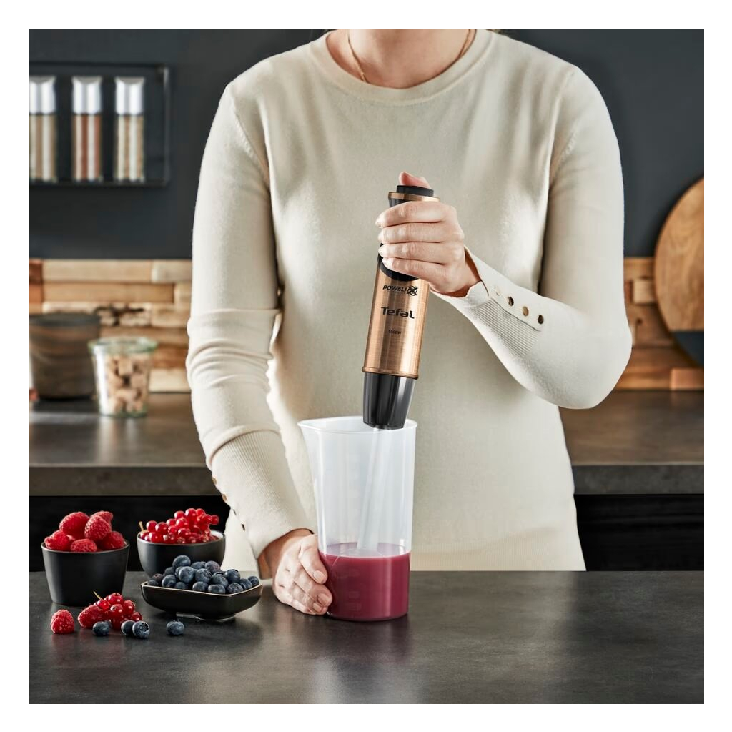 Блендер Tefal HB656G10 – це потужний занурювальний блендер, який стане незамінним помічником на вашій кухні. Завдяки потужності 1000 Вт та 20 швидкостям, ви з легкістю зможете приготувати різноманітні страви, від смузі до супів-пюре.