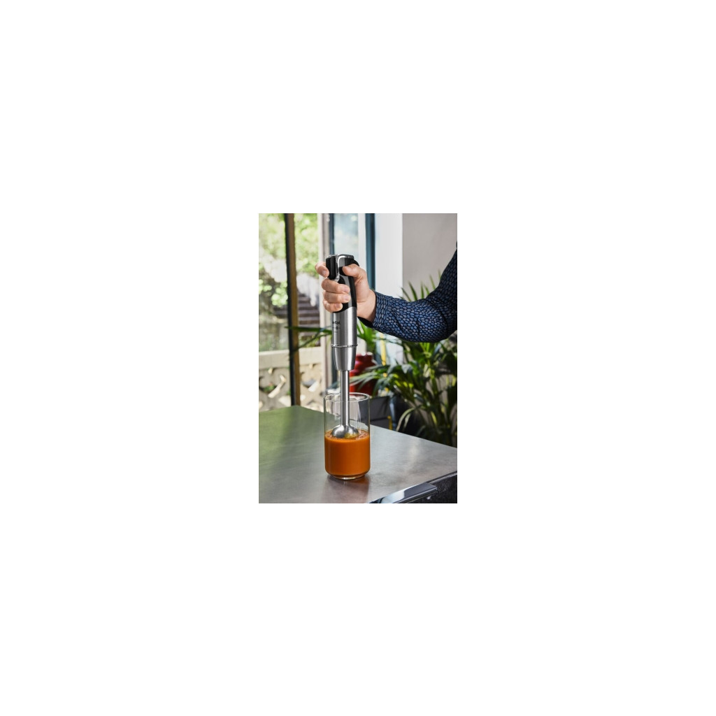 Tefal INFINY FORCE PRO 5в1 HB95LD38 оснащений технологією Powelix Life, яка забезпечує титанове покриття лез, таким чином вони стають на 30% ефективніше в роботі і довговічніше в експлуатації. Висока точність збивання забезпечена наявністю багатошвидкісного тригера, який працює для отримання будь-якої необхідної текстури. Потужний мотор дозволить змішувати продукти різної твердості, текстури, консистенції в найкоротші терміни.