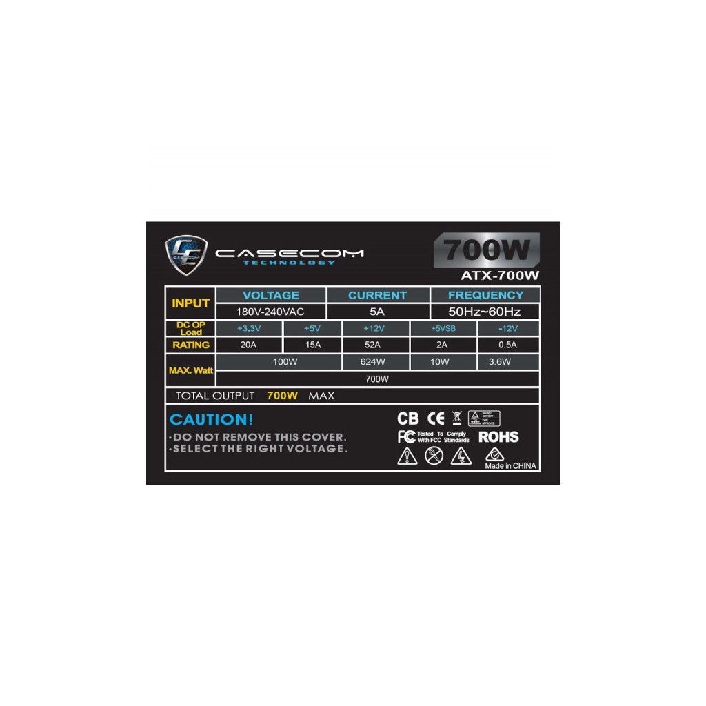 Блок живлення Casecom 700W (CM 700 ATX) – це надійне рішення для комп'ютерів, яке забезпечує стабільну роботу вашої системи з потужністю 700 Вт. Ідеально підходить для геймерів та професіоналів, які потребують високої продуктивності та надійності.