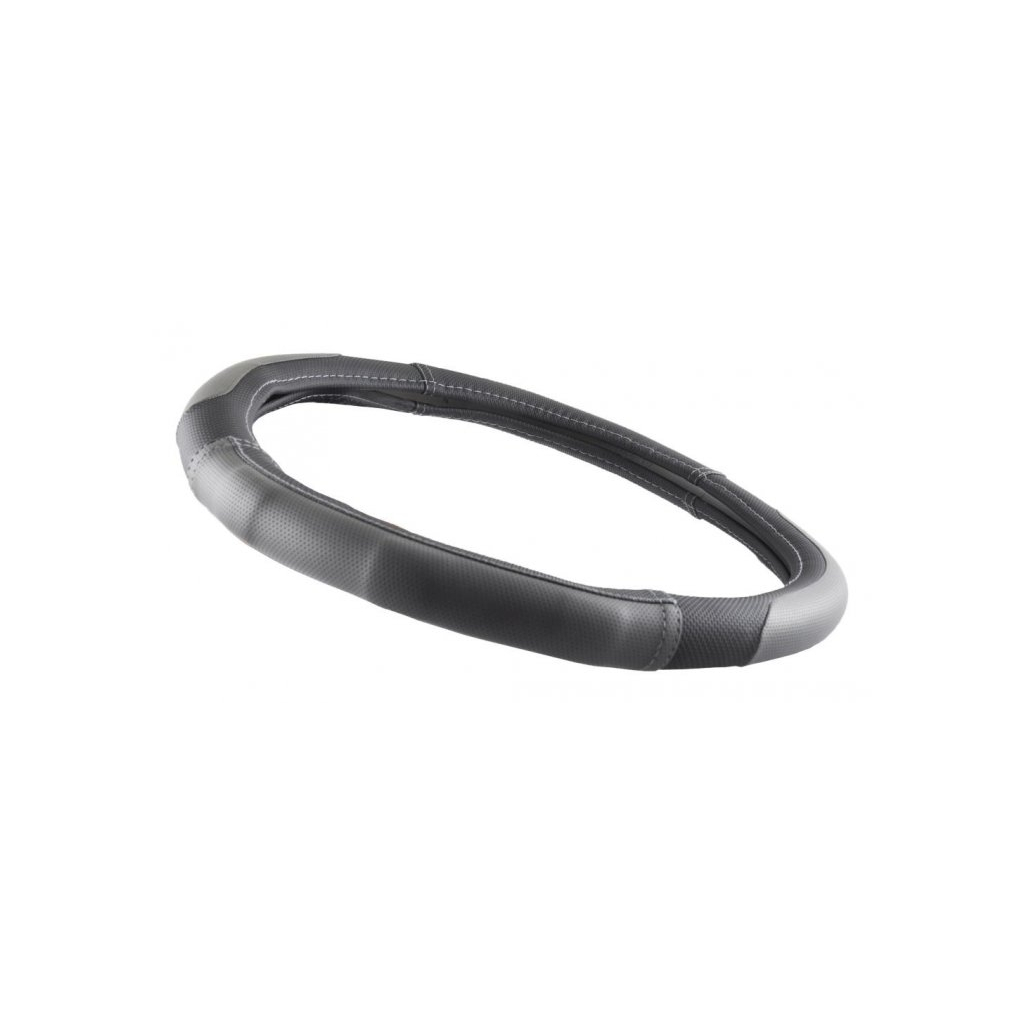 Чохол на кермо Winso L 39-41см (140630) екокожа/ чорний із сірими вставками/перфорація/біла основа (4793) прикрасить та урізноманітнить салон вашого автомобіля, підвищить безпеку керування, захистить поверхню рульового колеса від зносу та механічних пошкоджень. Внутрішній шар виготовлений на основі високоякісної безароматної, еластичної білої гуми, яка гарантує надійне зчеплення чохла з кермом. Чохол виробляється із зносостійкого екошкіри, приємного на дотик. Такий склад не допускає, щоб у спеку руки потіли і ковзали по керму, а в холодний період не виникало відчуття дискомфорту при контакті з кермом. Руки займають правильне та зручне положення на кермі, не виникало втоми навіть під час тривалих поїздок. Має перфораційні отвори. Чохли на кермо виготовляються на високоточному обладнанні.