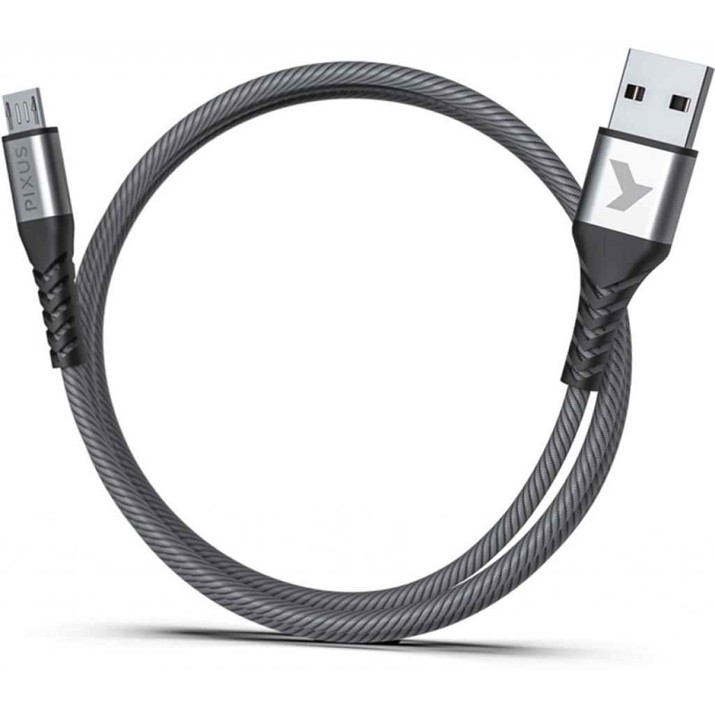 Основні технічні характеристики включають: тип кабелю – USB 2.0, конектор 1 – USB 2.0, конектор 2 – micro USB, довжина – 1 м, колір – сірий. Виробник – Pixus, країна виробництва – Китай.