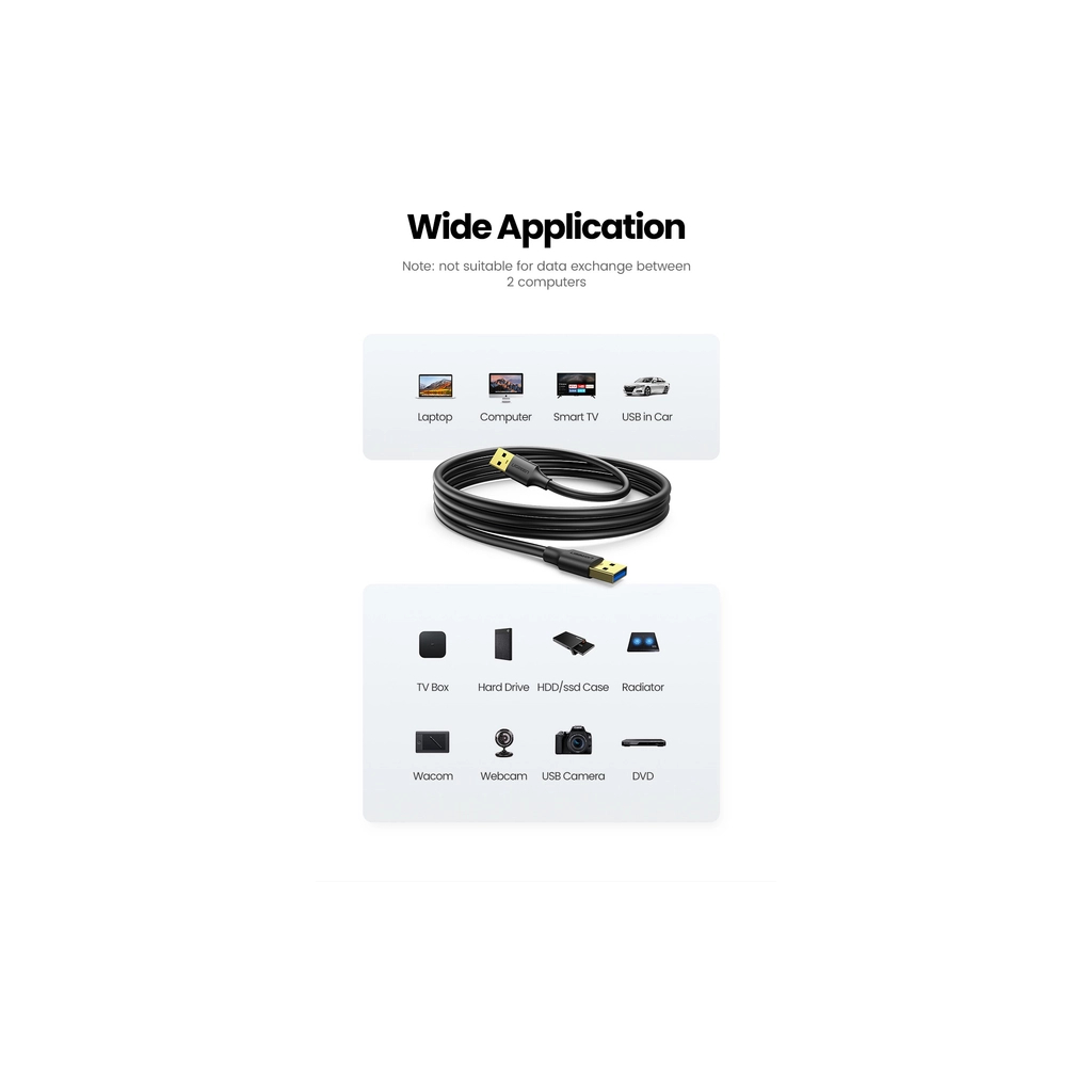UGREEN представляє кабель USB 3.0 AM/AM довжиною 2 метри, який забезпечує надійне та швидке з’єднання для ваших пристроїв. Цей кабель ідеально підходить для передачі даних між комп’ютерами, ноутбуками, принтерами та іншими USB-пристроями, підтримуючи швидкість передачі до 5 Гбіт/с.