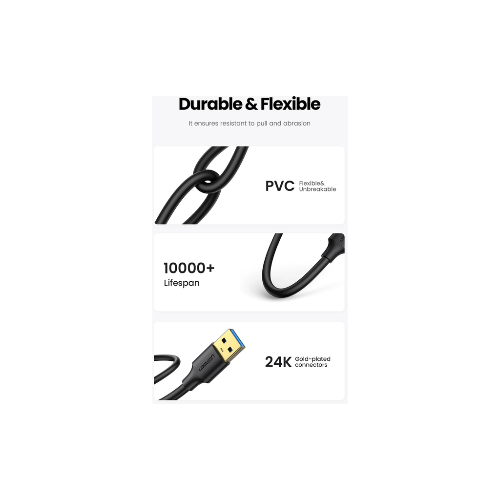 Основні технічні характеристики кабелю UGREEN USB 3.0 AM/AM 2.0m US128 black: