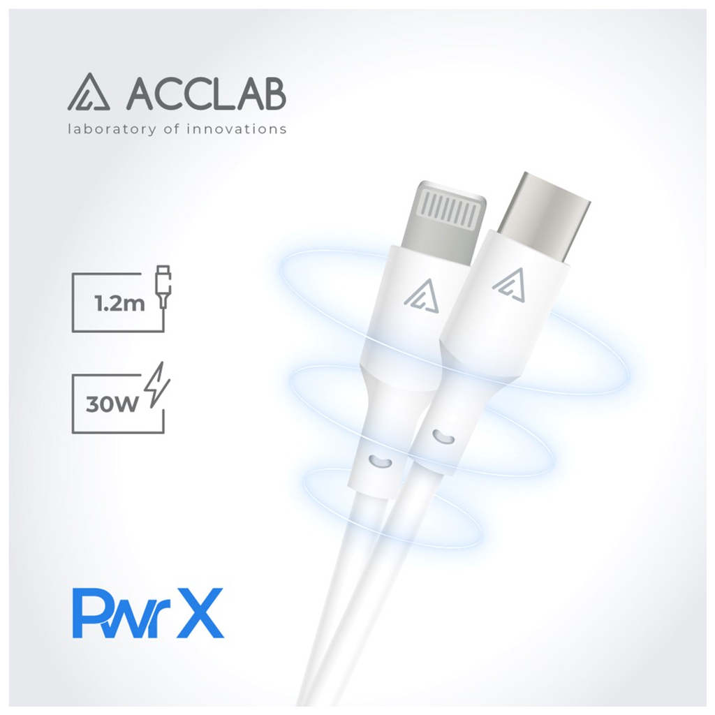 ACCLAB USB-C to Lightning кабель 1.2m PwrX 30W – це надійний та швидкий кабель, призначений для зарядки та передачі даних між пристроями з USB Type-C та Lightning конекторами. Завдяки довжині 1.2 метра, він забезпечує зручність використання у будь-яких умовах.