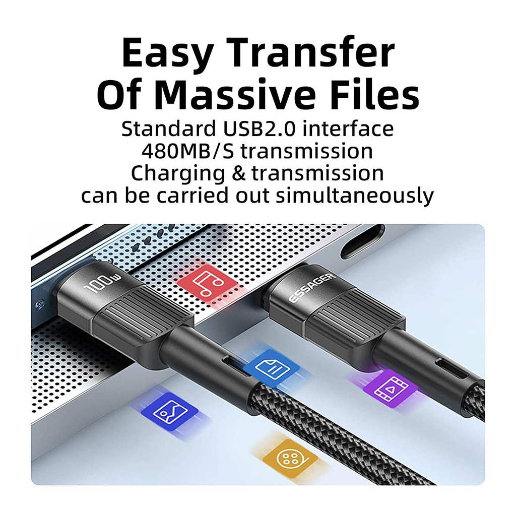 Кабель ESSAGER Star 100W призначений для заряджання та передачі даних. Він підтримує швидку зарядку за технологією Qualcomm Quick Charge 3.0-4.0, що робить його ідеальним вибором для пристроїв Xiaomi, Meizu, Samsung, LG, HTC, Huawei та інших. Кабель виконаний в нейлоновому обплетенні, що забезпечує його міцність та довговічність.