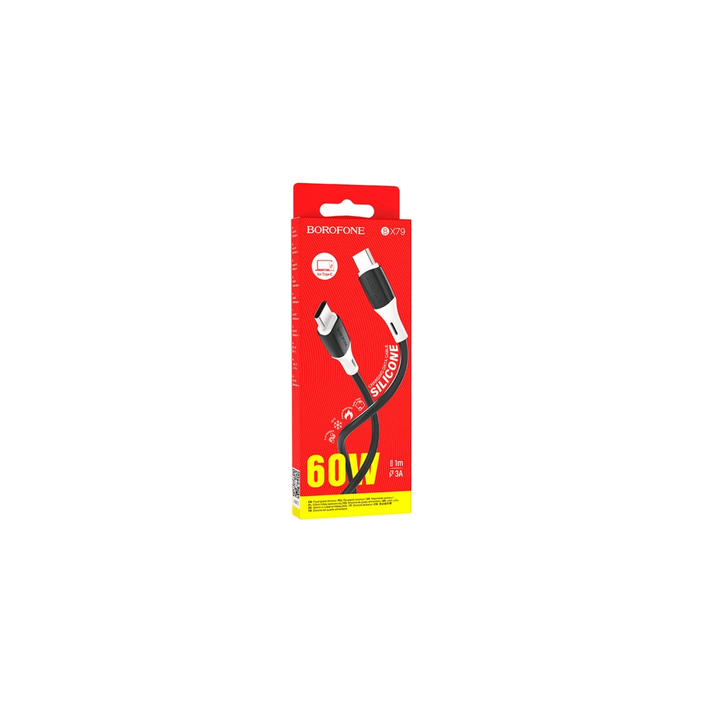 Дата кабель USB-C to USB-C 1.0m 3A 60W silicone black BOROFONE (6974443384802)