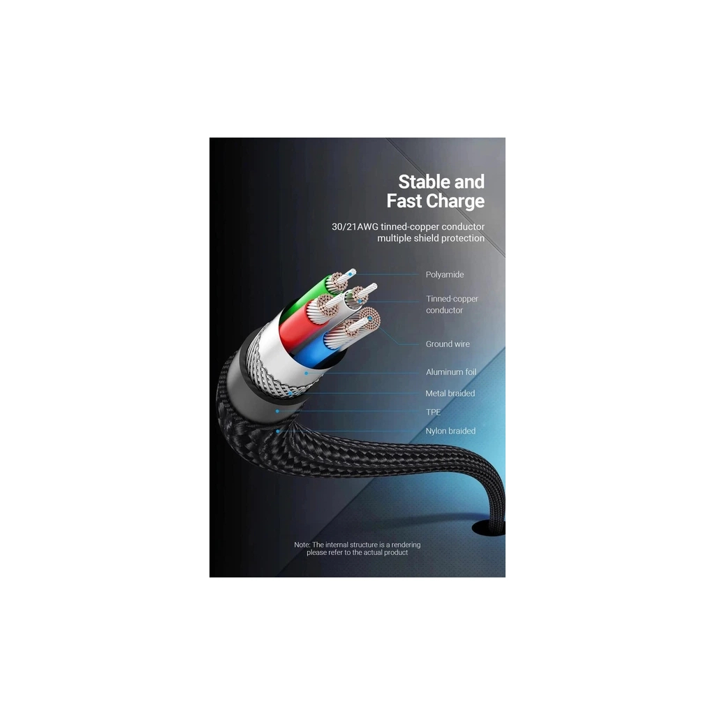 - Обплетення кабелю виконано з якісних матеріалів, що забезпечує високу міцність та довговічність.