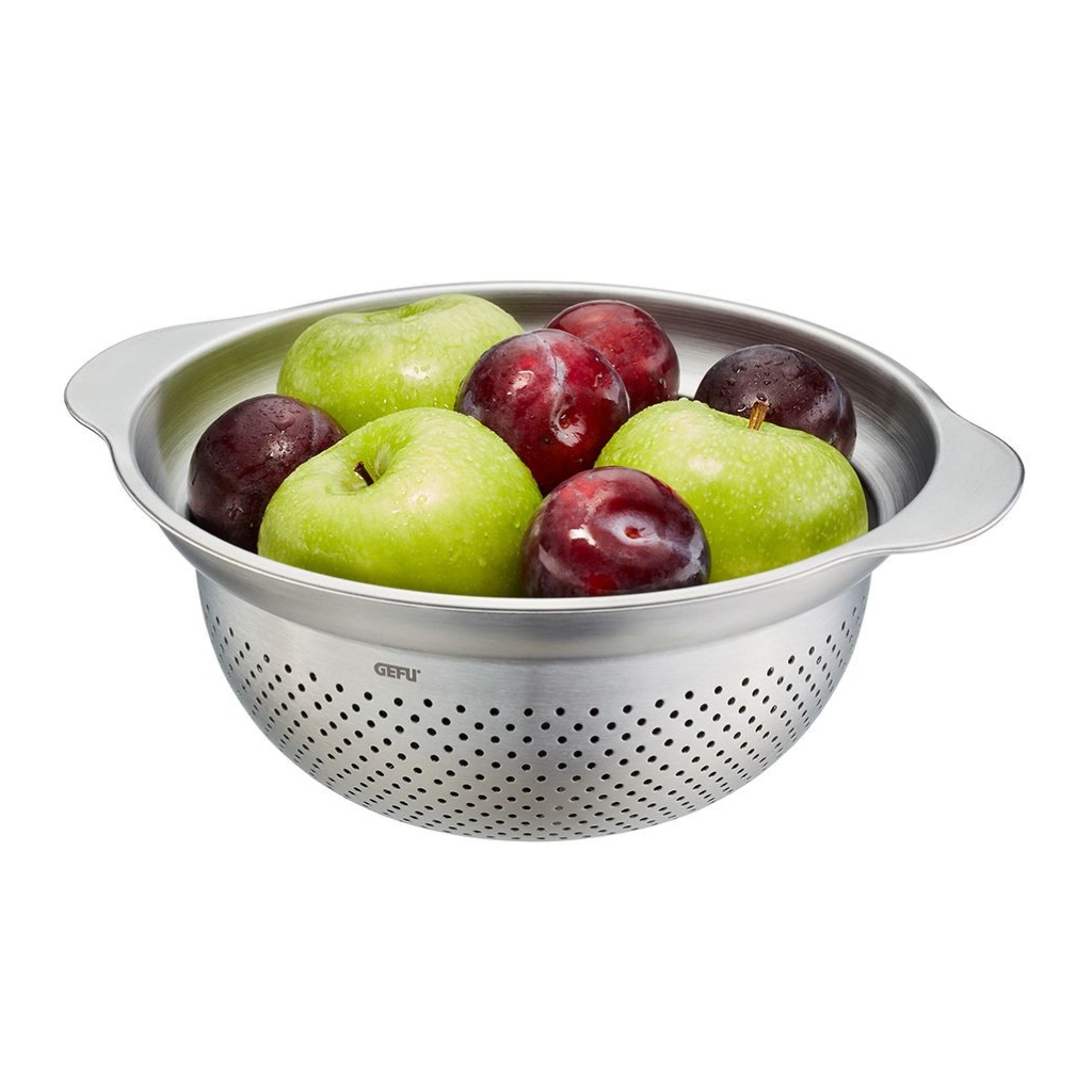 Друшляк Gefu Premio 23 см – ідеальне рішення для вас. Завдяки інноваційним отворам на дні та бокових стінках, відціджування стає швидким та ефективним. Отвори діаметром 2,3 мм запобігають проходженню тонких ниток макаронів або рисових зерен. Великі та зручні ручки забезпечують надійний захват під час використання. Виготовлений з високоякісної нержавіючої сталі, цей друшляк гарантує довговічне використання та легке миття в посудомийній машині.