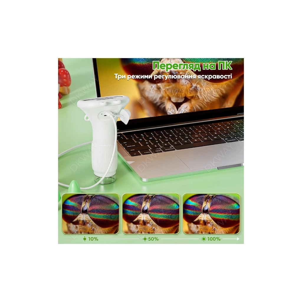 Дитячий мікроскоп DKWAY – це портативний кишеньковий мікроскоп з екраном Macro IPS KM1000, призначений для дітей від 3 років. Завдяки збільшенню до 1000х, цей мікроскоп відкриває світ мікроскопії для юних дослідників, дозволяючи їм вивчати мікроскопічні об'єкти з легкістю та цікавістю.