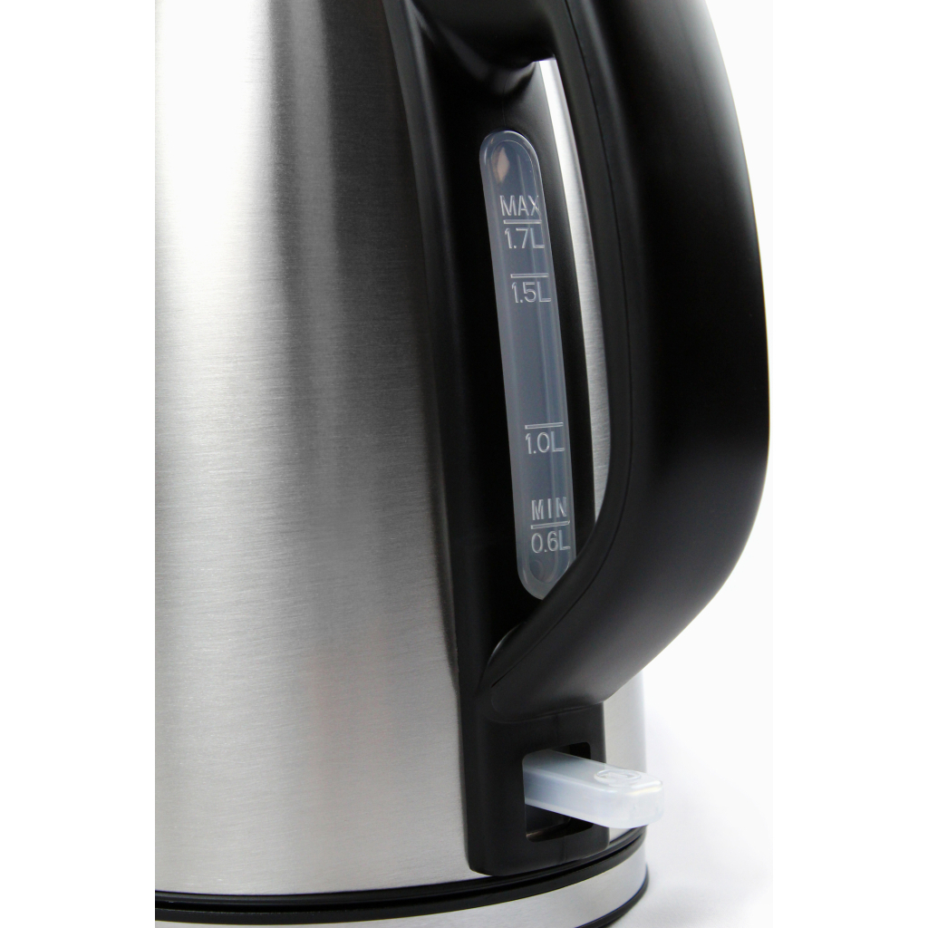 Цей електрочайник виготовлений з нержавіючої сталі, що забезпечує довговічність та естетичний вигляд. Прилад оснащений прихованим нагрівальним елементом, зовнішнім індикатором рівня води та зйомним фільтром від накипу. Кришка електрочайника незнімна, а обертання на 360° робить його використання зручним.