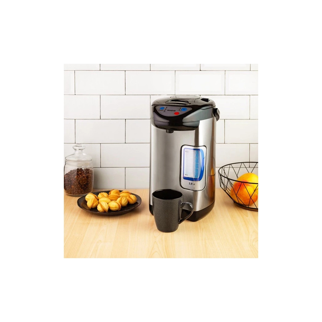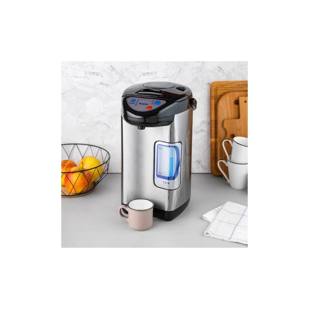 - Функціональність термопоту включає три температурні режими – 60°C, 85°C та 98°C, що дозволяє підібрати оптимальну температуру для різних видів гарячих напоїв.