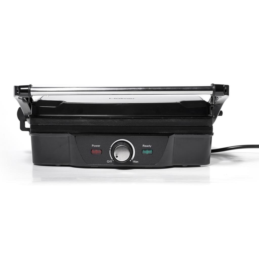 Модель HCG-160 оснащена механічним регулятором температури, розташованим на лицьовій панелі. Температура нагріву становить: 140-200°С. Кут відкриття конструкції – 105°/180°, що дуже зручно для використання. Розклавши прилад горизонтально, у вас з’явиться додаткова площа для приготування страв.