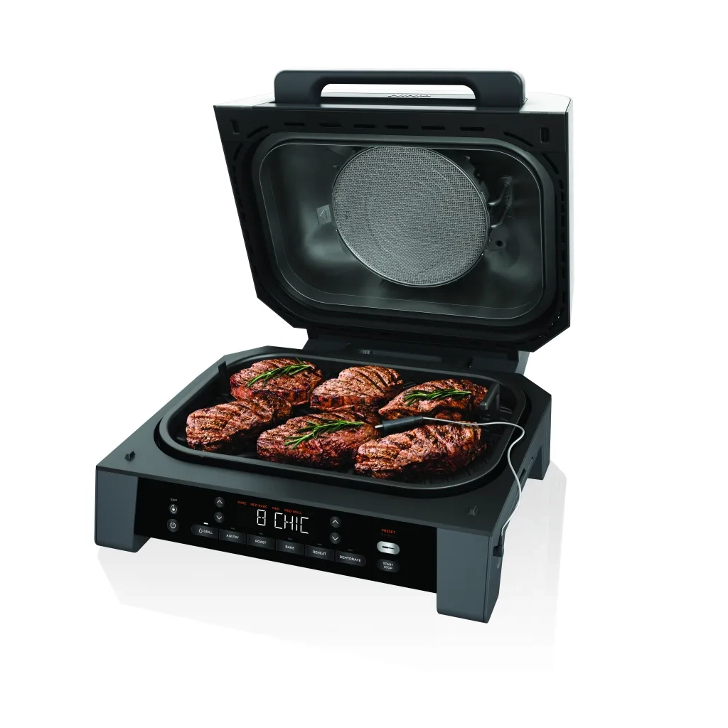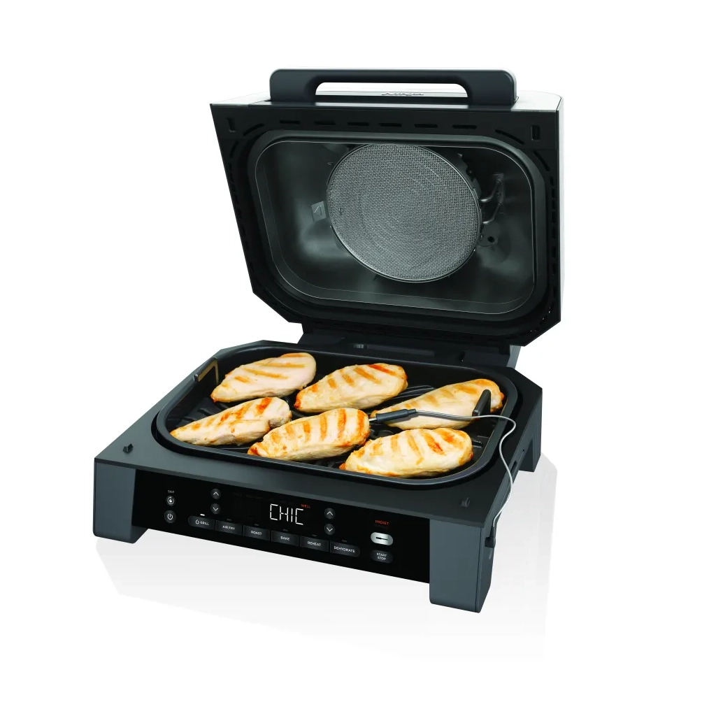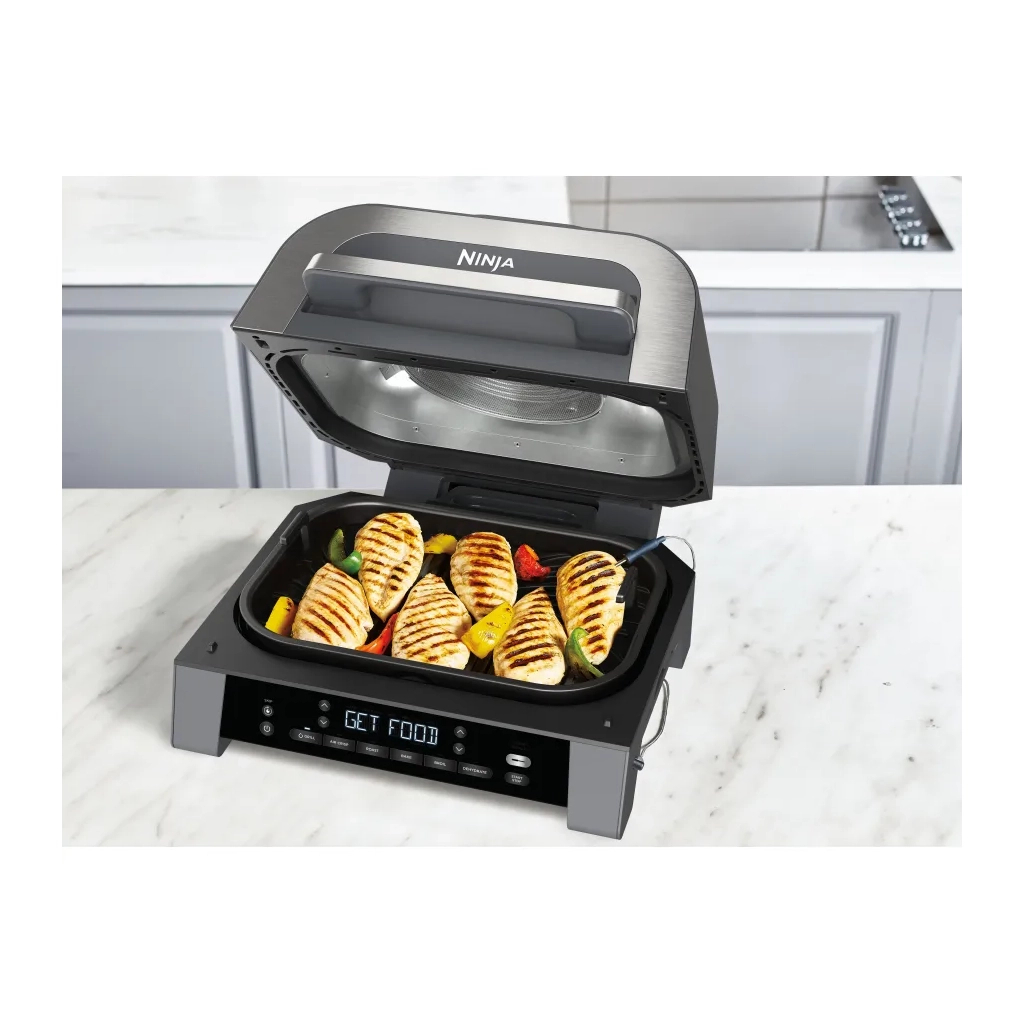 Цей електрогриль має ряд особливостей, які роблять його використання зручним та ефективним. Нехай вас не турбують ковзання під час приготування – нековзні ніжки забезпечують стабільність. Індикатор роботи дозволяє контролювати процес приготування, а термощуп у комплекті допоможе досягти ідеальної готовності страв. Ninja DG551EU – це ваш надійний помічник на кухні, який перетворить приготування їжі на справжнє задоволення.