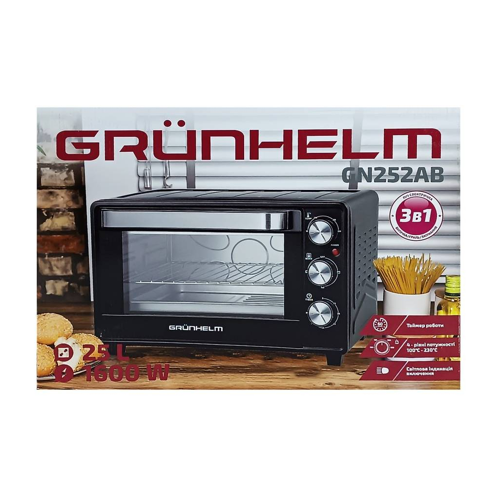 Електропіч Grunhelm GN252AB – це ідеальне рішення для приготування смачних страв у вашій кухні. Завдяки потужності 1600 Вт та об’єму 25 л, вона забезпечує швидке та ефективне приготування їжі. Механічне управління робить процес простим і зрозумілим, а різноманітні функції, включаючи гриль, дозволяють експериментувати з різними рецептами.