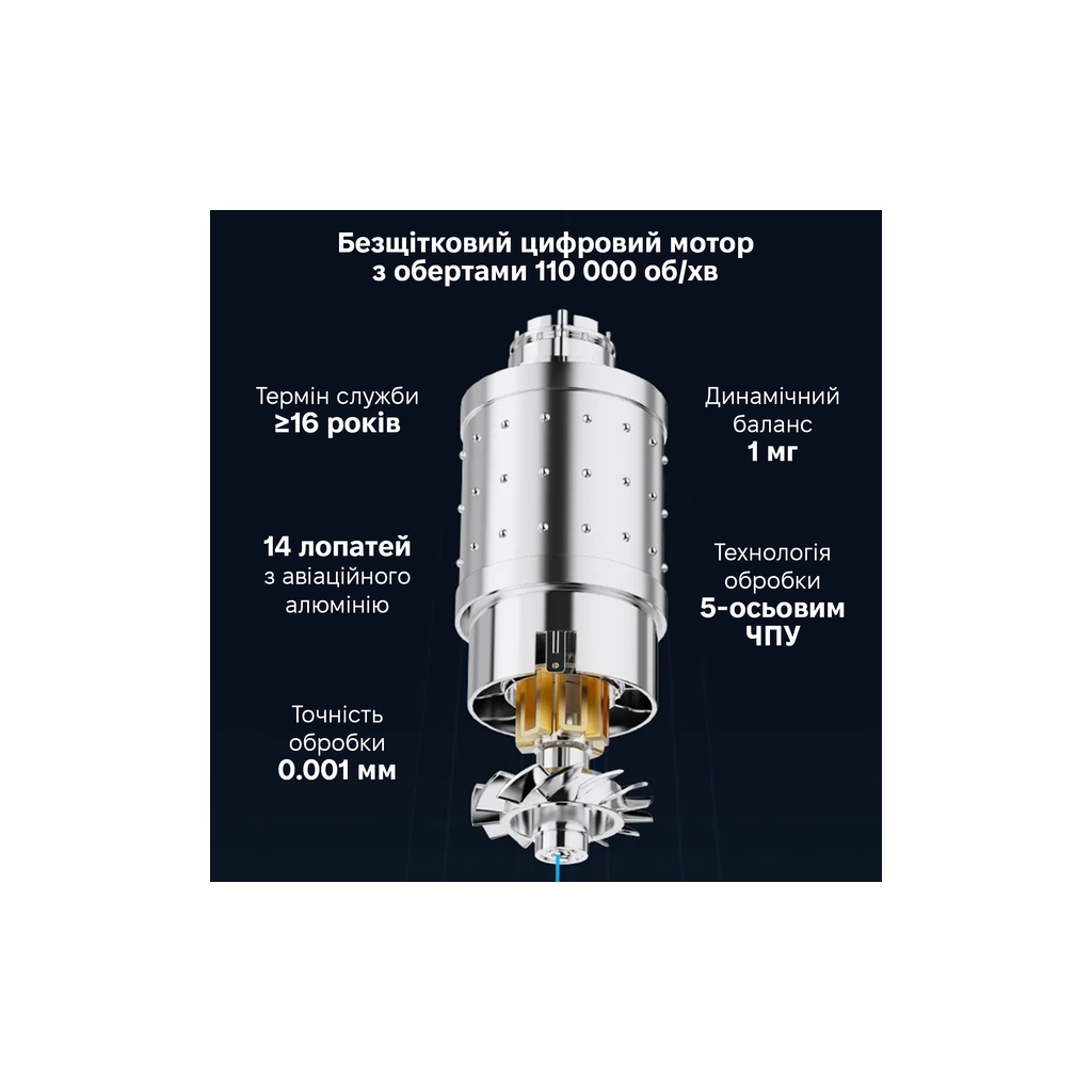 - Високошвидкісний мотор: 110 000 об/хв — надійна робота понад 16 років.
