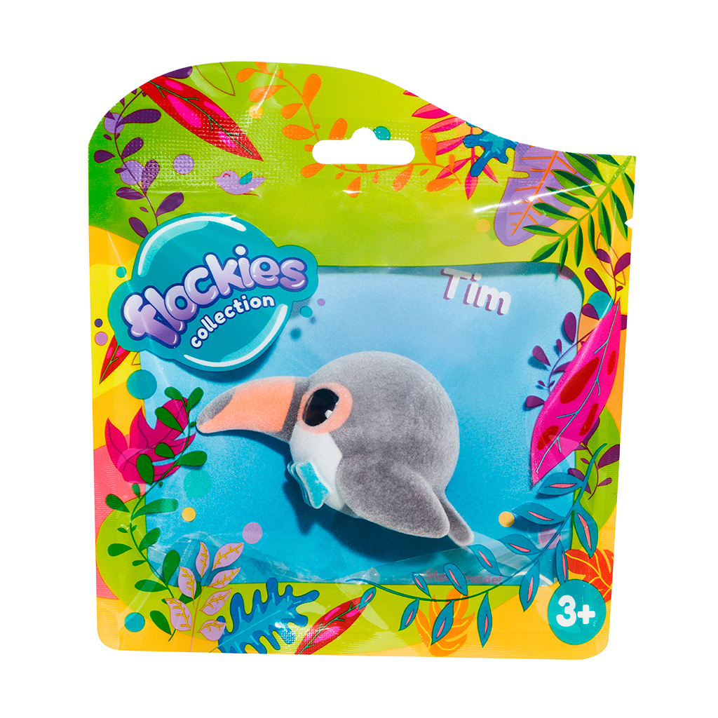 Вітайте милих тваринок від Flockies! Фігурки тваринок поєднують в собі два світи: природи (з цікавими фактами про тварин) та фентезі (з казковими пригодами героїв). Це ідеальний спосіб досліджувати світ в ігровій формі! Знайомтеся з веселим туканом Тімом! Він захоплюється комп’ютерними іграми та належить до групи за захопленнями «Спорт і розваги». Тім не уявляє свій день без ігрової приставки та зручного дивана!