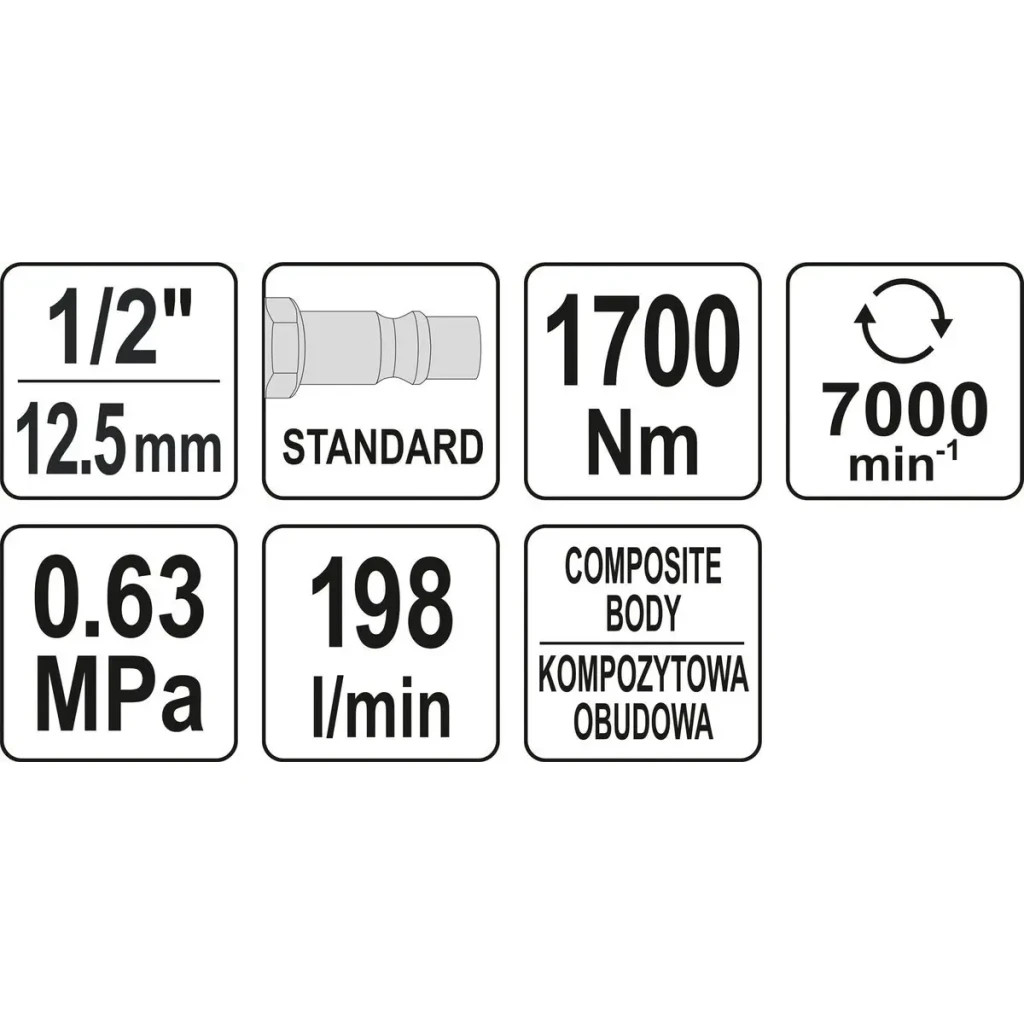 Основні технічні характеристики гайковерта Yato YT-09544 включають: