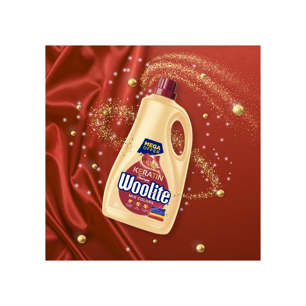 Гель для прання Woolite Для кольорових тканин З кератином 3.6 л – це універсальний засіб, спеціально розроблений для відновлення кольору та захисту кольорових тканин. Він надає білизні свіжість та приємний аромат, що робить прання ще більш приємним.