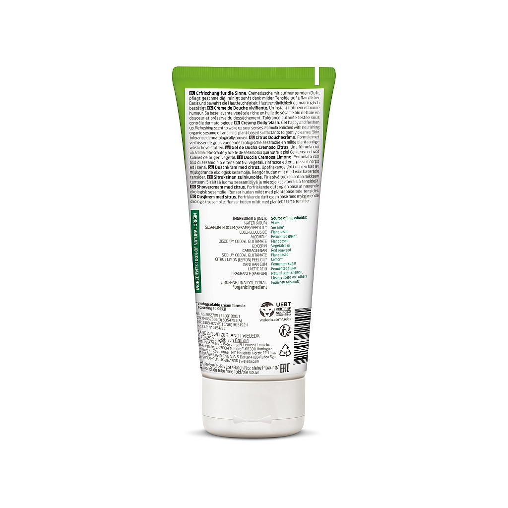 Гель для душу Weleda Citrus Creamy Body Wash 200 мл — це справжня насолода для вашої шкіри, що дарує їй свіжість та енергію. Призначений для тонізування і очищення шкіри, цей гель ідеально підходить для всіх типів шкіри, роблячи ваше очищення приємним і ефективним.