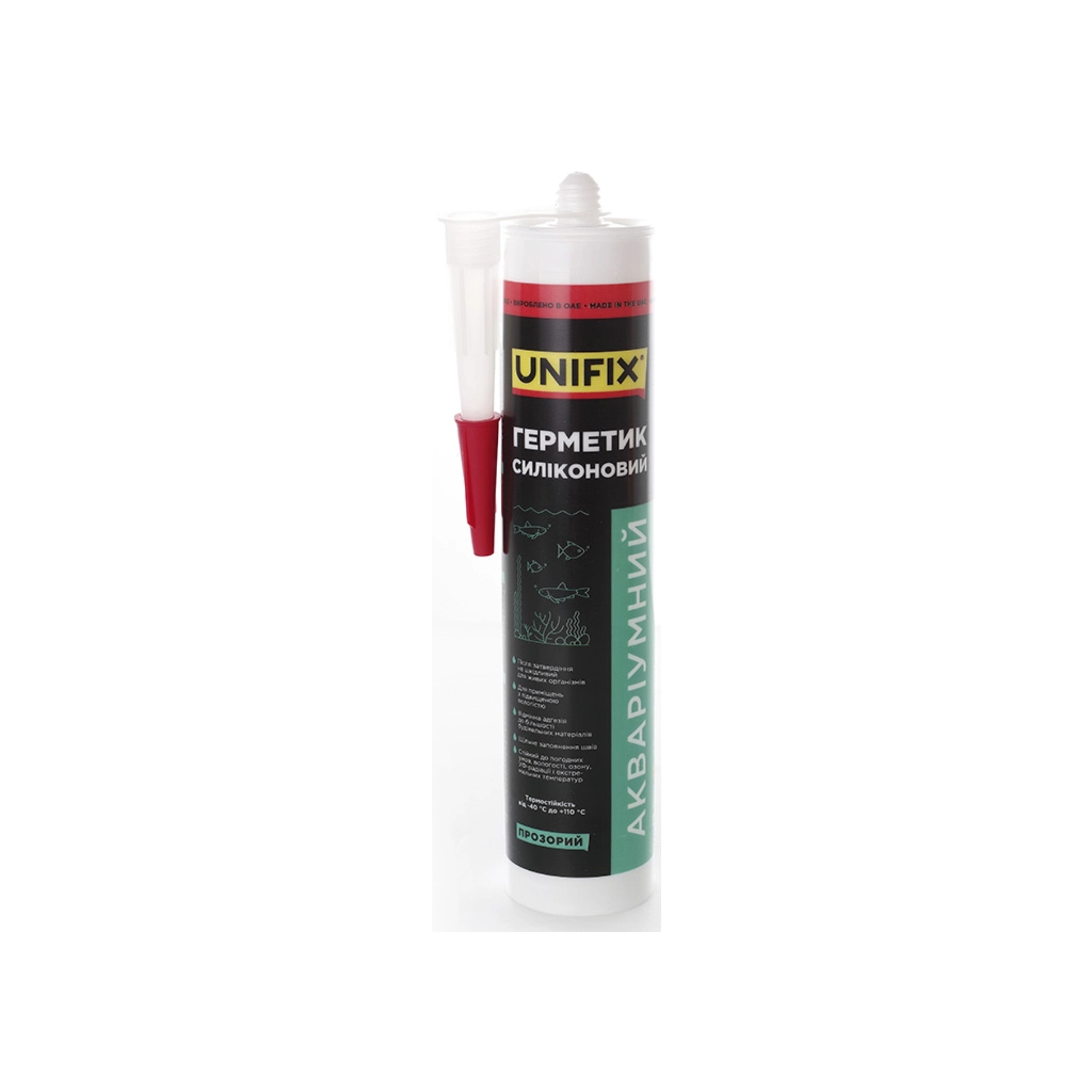 Unifix – Однокомпонентний універсальний силіконовий кислотний герметик, що твердіє при взаємодії з вологою при кімнатній температурі і формує гнучкий еластичний продукт. Широко застосовується в будівництві і склінні. Легко наноситься і забезпечує відмінну адгезію до непористих поверхонь, таких як скло, глазурована керамічна плитка, алюміній, пластик, цегла та інші. Стійкий до озону, УФ-радіації і екстремальних температур. Призначений для використання зі спеціальним пістолетом для герметиків.