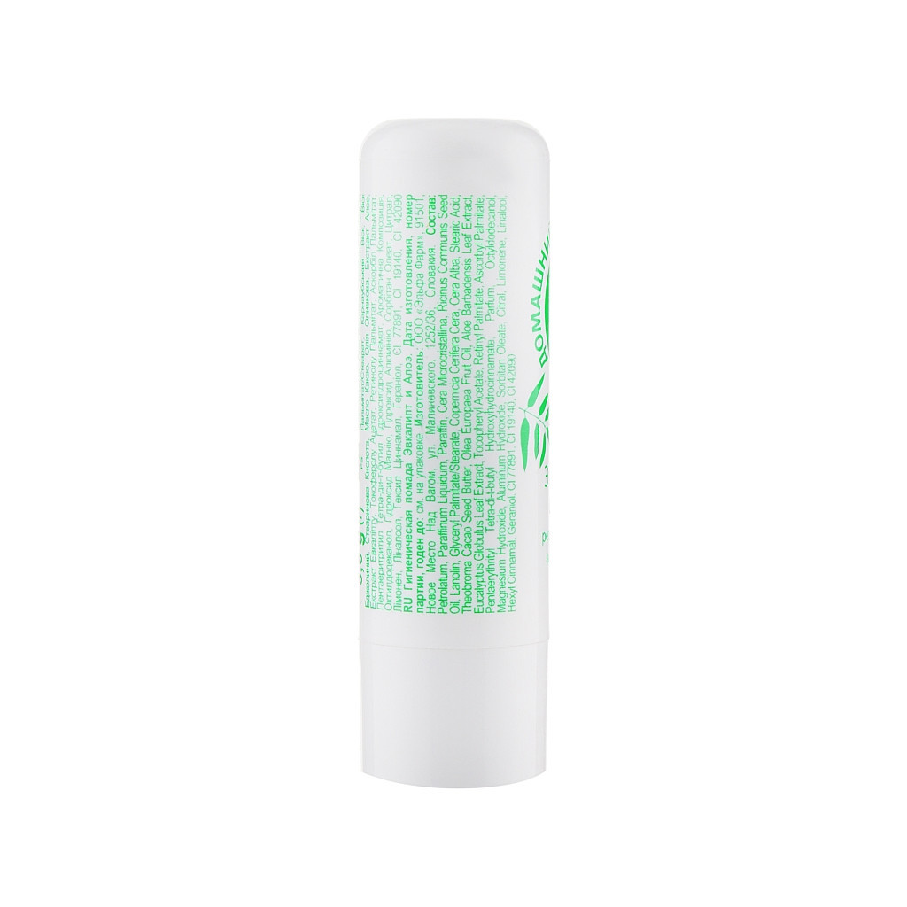Гігієнічна помада Домашній Доктор Евкаліпт і алое – ідеальний засіб для догляду за губами, що забезпечує їх зволоження та захист. Завдяки унікальному поєднанню смаків алое та евкаліпту, ця помада не лише дарує приємні відчуття, але й допомагає підтримувати природний баланс шкіри губ.