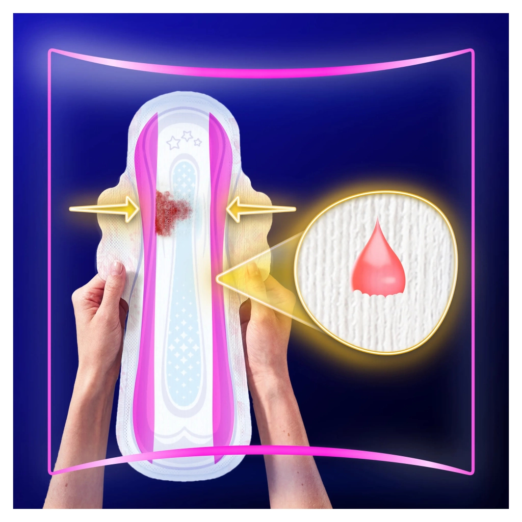 Ці прокладки мають ряд особливостей, які роблять їх ідеальними для нічного використання. Форма з крильцями забезпечує додаткову фіксацію, запобігаючи зсуву під час сну. Ароматизація надає відчуття свіжості, а висока поглинаюча здатність гарантує комфорт протягом всієї ночі. Вибираючи Always Ultimate Night, ви отримуєте надійний захист та комфорт, які дозволять вам спати спокійно.