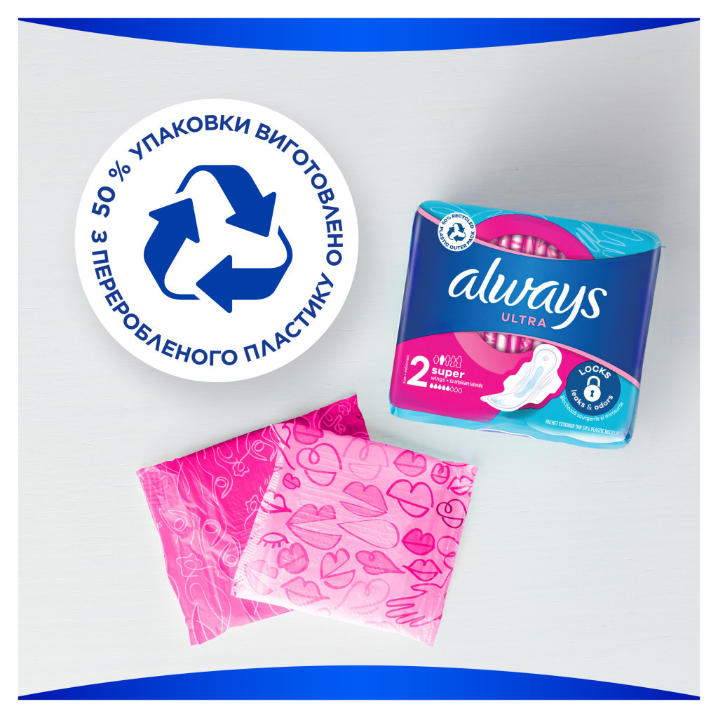 Прокладки Always Ultra Super мають форму з крильцями, що забезпечує додаткову фіксацію та комфорт під час носіння. Висока поглинаюча здатність у 5 крапель гарантує надійний захист у будь-якій ситуації. Вони не мають ароматизації, що робить їх ідеальними для чутливої шкіри. Обираючи Always, ви отримуєте якість та комфорт, перевірені часом.
