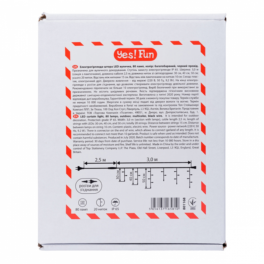 Гірлянда YES! Fun штора LED — це ідеальний вибір для створення магічної атмосфери на вашій вулиці. Ця електрогірлянда-штора призначена спеціально для вуличного декору, відзначаючись надійністю та естетичним виглядом. Багатобарвні лампочки, що складають цю гірлянду, здатні додати яскравості у найпохмуріші дні, перетворюючи ваш простір на справжню казку.