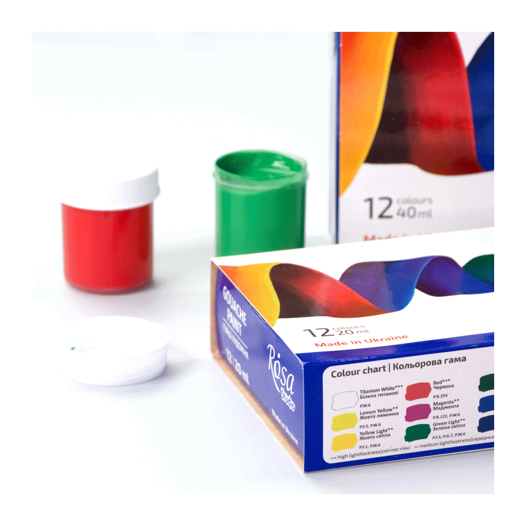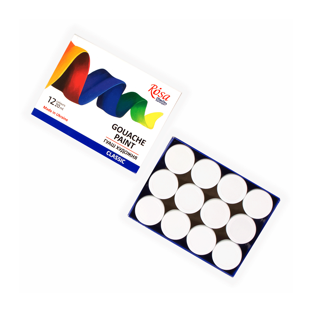 Гуашеві фарби Rosa Studio Classic – це ідеальний вибір для художників, школярів та всіх, хто любить малювати. Набір містить 12 насичених кольорів об'ємом по 20 мл, що дозволяє створювати яскраві та виразні роботи.