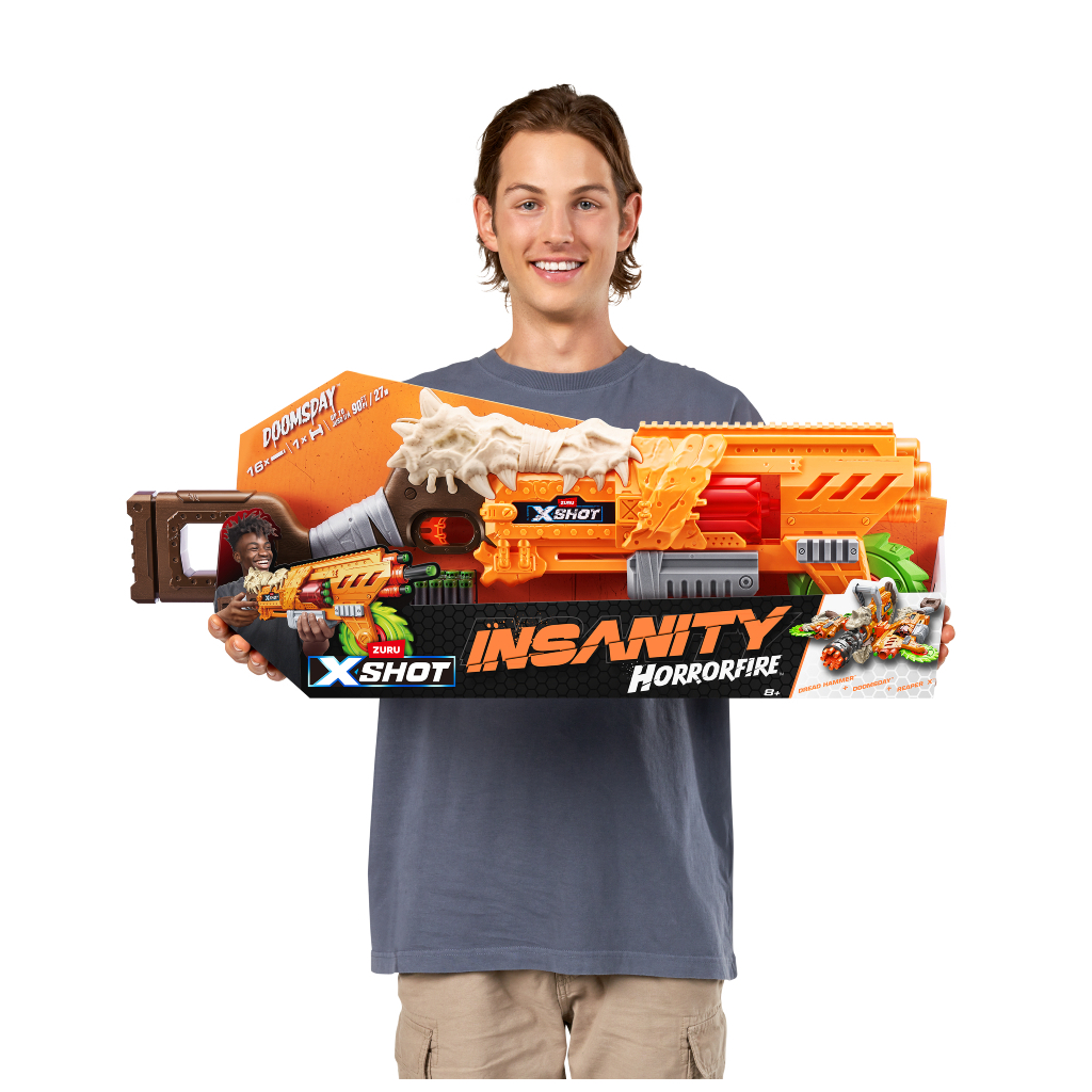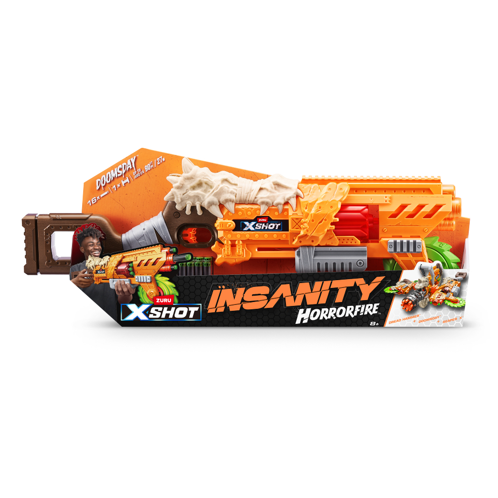 - Комбінування бластерів: Поєднуйте Doomsday з іншими бластерами серії Insanity Horrorfire для ще більшої потужності та веселощів!