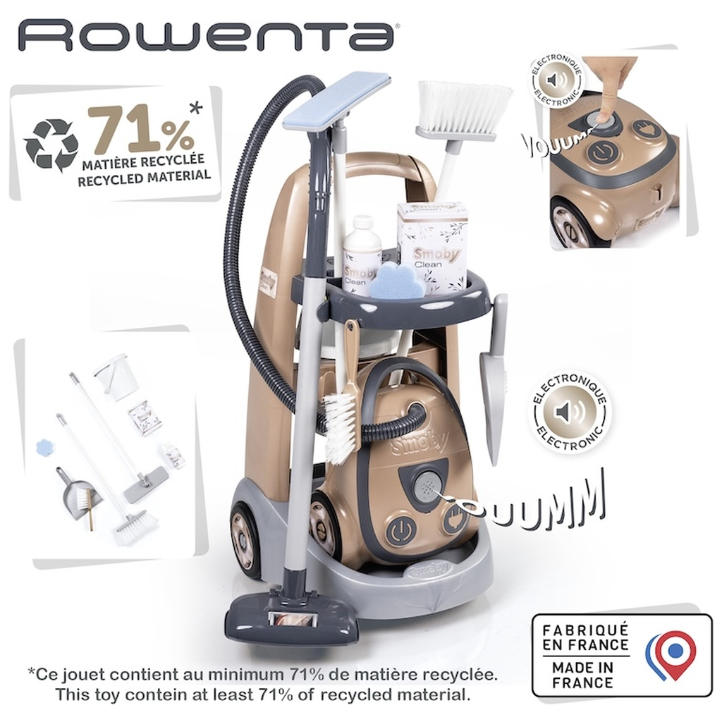 Ігровий набір Smoby Вiзок для прибирания Ровента з пилососом – це чудовий спосіб для дітей від 3 років зануритися у світ домашніх обов’язків та навчитися відповідальності через гру. Цей набір не лише розвиває уяву, але й допомагає дітям зрозуміти важливість прибирання в домашньому господарстві. Завдяки високоякісному пластику, він є безпечним та довговічним для активних ігор.