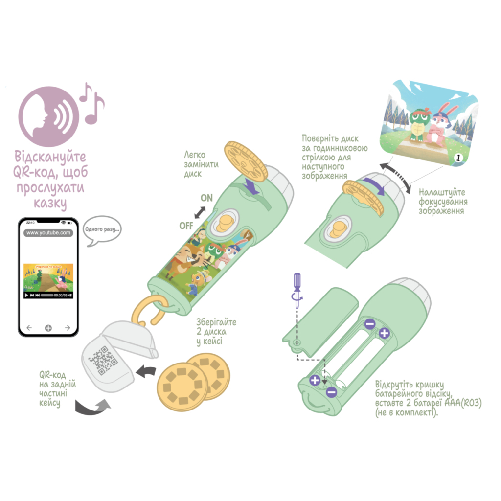 - Яскраві зображення, що відтворюються на стіні під час казки.