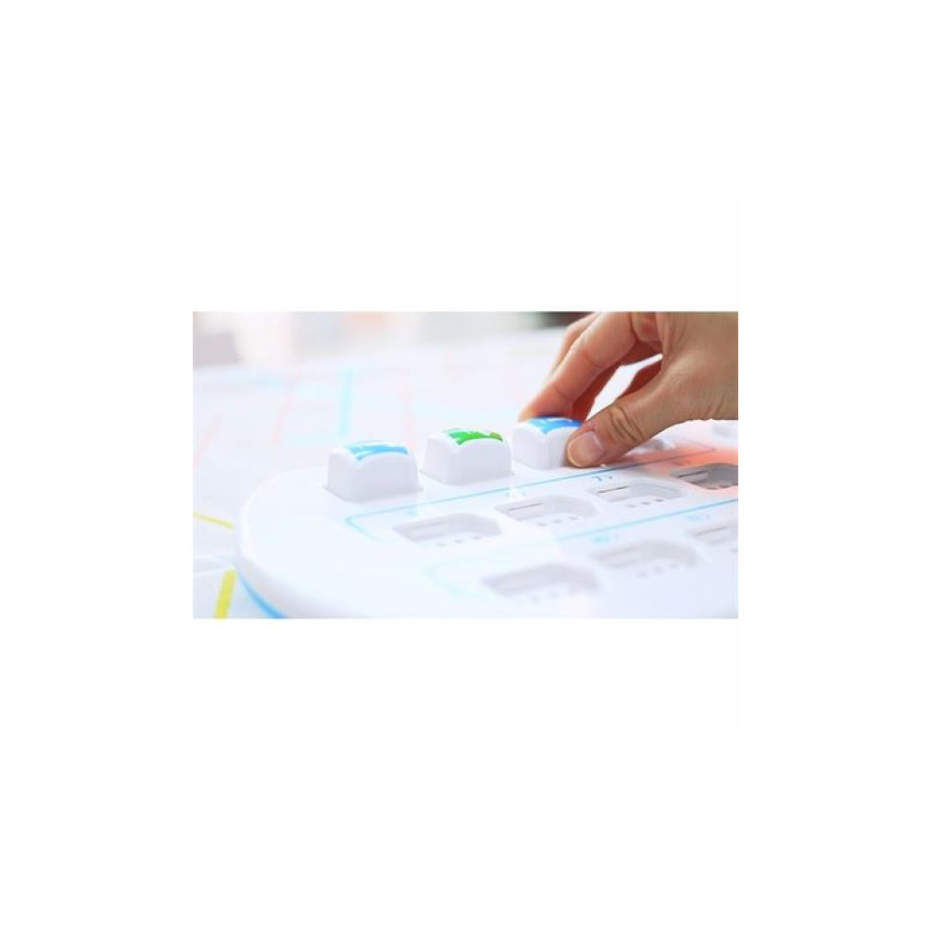 Набір призначений для дітей дошкільного віку для гри і навчання вдома, у дитячому садку, центрах розвитку, школі. Набір підходить для занять за методикою STEM. Як же грати з цим симпатичним роботом? Поставте його на карту з маршрутами, виберіть карту із завданням, відберіть блоки програмування маршруту, вставте блоки на панель управління, зніміть шолом робота і встановіть його на панель управління. Коли лампочка виконання засвітиться зеленим, натисніть кнопку Go (старт). Відбудеться запис програми на шолом. Зніміть шолом із панелі та надіньте його на голову робота. Він засвітить очима. Натисніть кнопку дії на грудях робота, і він почне слідувати до намальованої на мапі школі.