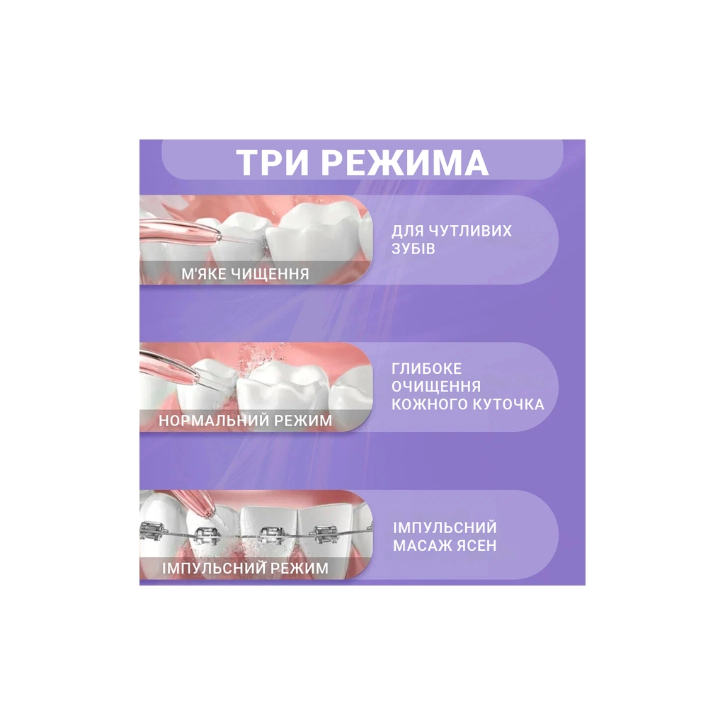 - Режими роботи: щоденне чищення, догляд за язиком, міжзубне чищення