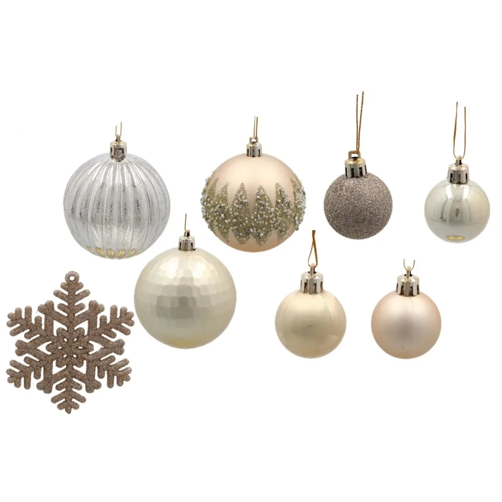 Ялинкова іграшка Chomik пластикові Кульки, сніжинки 30 шт, шампань – це ідеальний набір для створення святкової атмосфери у вашому домі. Завдяки різнокольоровим пластиковим кулькам та сніжинкам, ви зможете легко декорувати ялинку або інші святкові елементи, додаючи їм яскравості та елегантності.