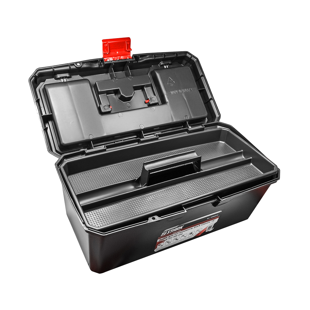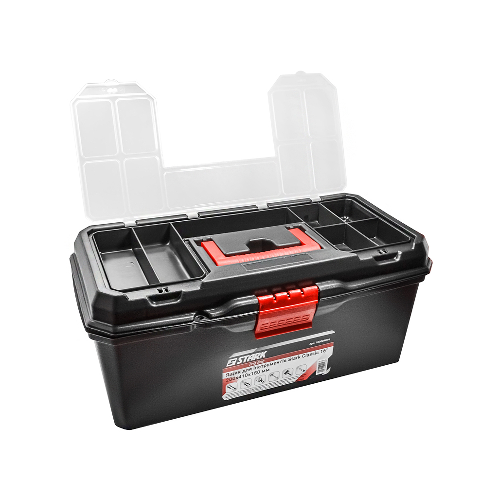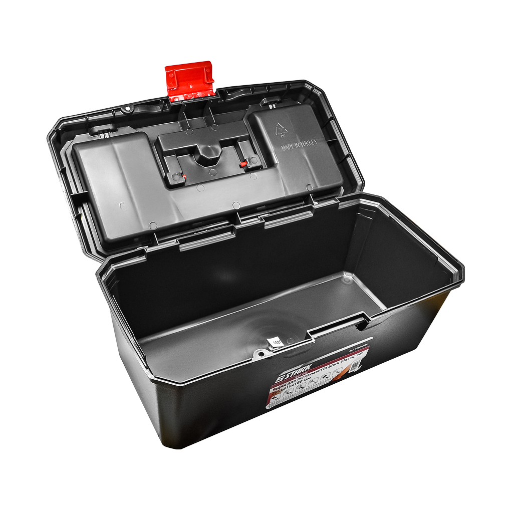 Ящик Stark Classic має нерегульовані перегородки органайзера, що дозволяє зручно розмістити різні інструменти. Завдяки надійній конструкції з пластика та зручній ручці, ви зможете легко переносити ящик. Цей ящик стане надійним помічником для будь-якого майстра, забезпечуючи порядок та зручність у використанні.