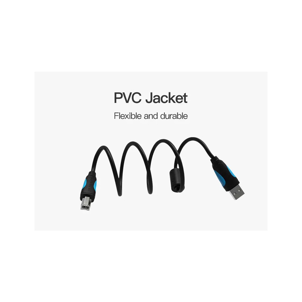 Кабель для принтера USB 2.0 AM/BM 1.0m black від Vention — ідеальне рішення для підключення принтерів, сканерів та інших USB-сумісних пристроїв до комп’ютера. Цей кабель виготовлений з високоякісного поліхлорвінілу, що забезпечує його довговічність та надійність. Жили провідників виготовлені з чистої безкисневої міді, що гарантує високу швидкість передачі даних. Ізолятор з спіненого поліетилену забезпечує додатковий захист. Нерозбірна конструкція роз’єму залита гнучким пластиком, що робить кабель стійким до механічних пошкоджень.