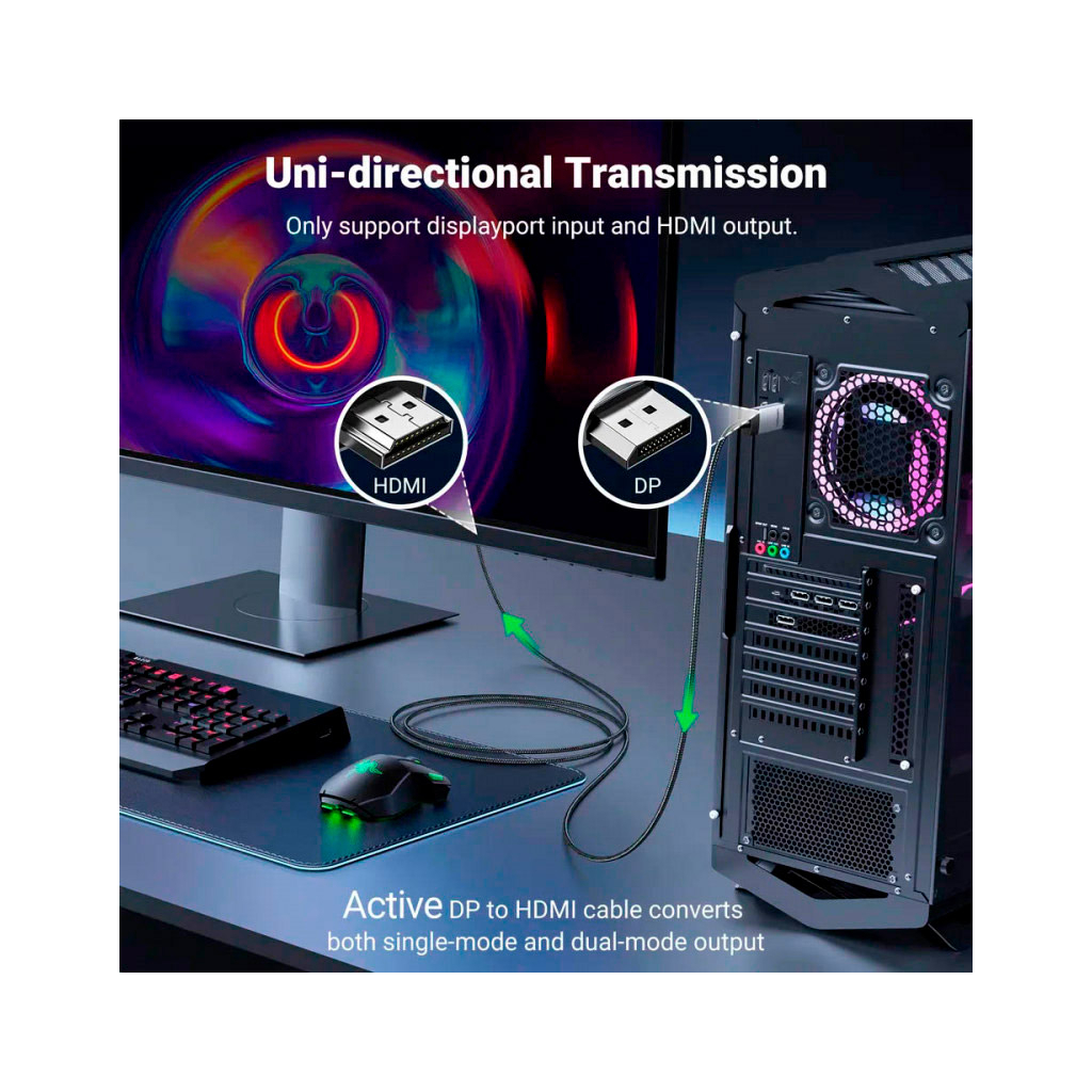 Кабель мультимедійний DisplayPort to HDMI від Ugreen – це ідеальне рішення для підключення ваших пристроїв з DisplayPort до HDMI. Завдяки підтримці роздільної здатності 4K-60 Гц UHD, ви зможете насолоджуватися яскравими та чіткими зображеннями. Цей кабель також підтримує зворотну сумісність із 2K-60 Гц та 1080P-120 Гц, що робить його універсальним для різних потреб.