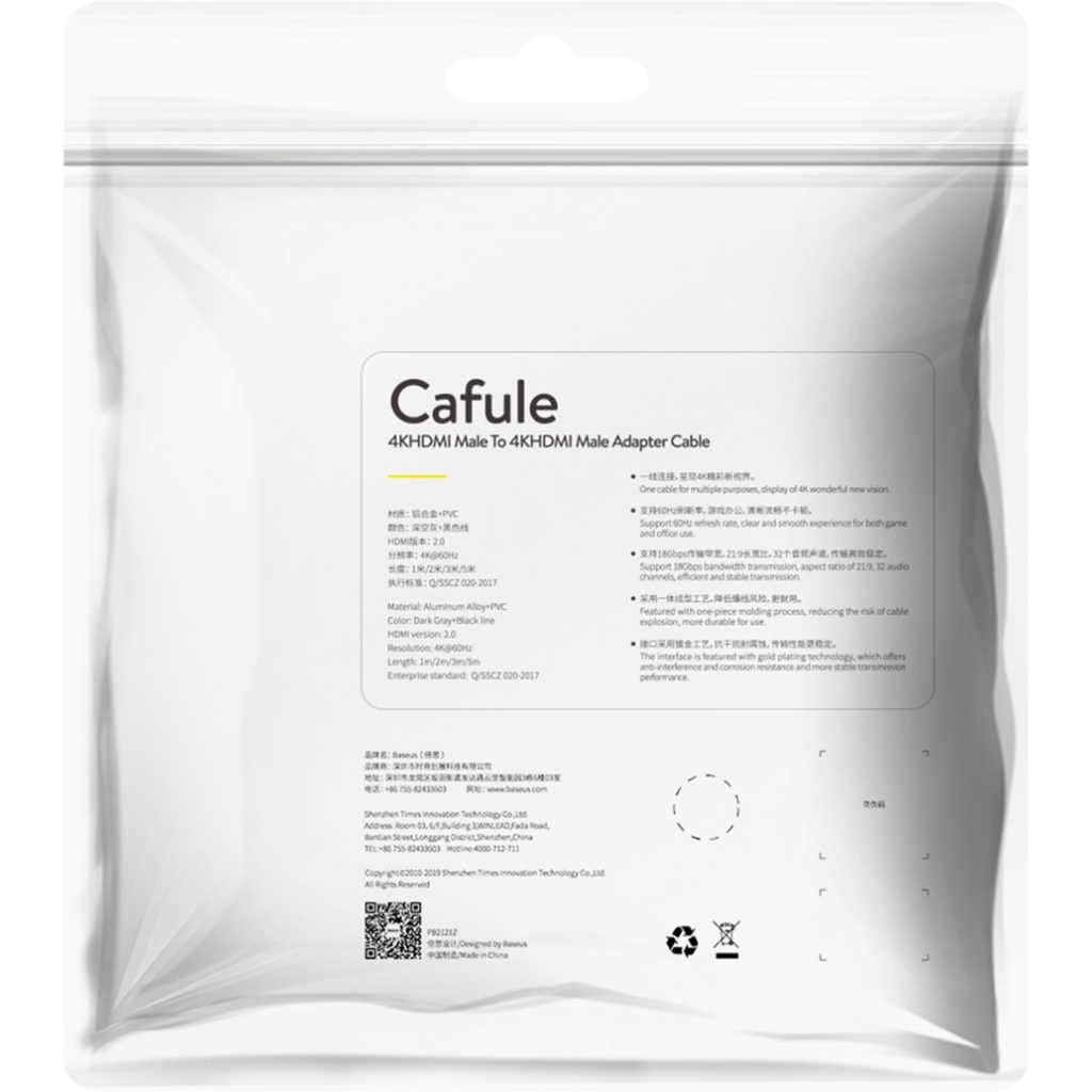 Кабель мультимедійний HDMI M to HDMI M 1.0m V2.0 Baseus (CADKLF-E01) — це високоякісний відеокабель, призначений для передачі аудіо та відео між двома пристроями. Завдяки інтерфейсу HDMI to HDMI, цей кабель підтримує дозвіл зображення до 4K та швидкість передачі даних до 18 Гб/с. Частота оновлення екрану складає 60 Гц, що забезпечує плавність зображення. Кабель має довжину 1 м і виготовлений з алюмінію та тканинного обплетення, що робить його не лише стильним, але й міцним.