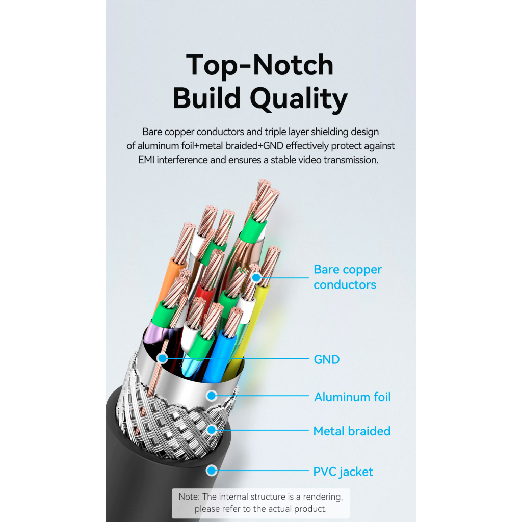 Цей кабель ідеально підходить для тих, хто цінує якість зображення та звуку. Його довжина в 3 метри дозволяє зручно підключати пристрої на відстані, а надійні конектори забезпечують стабільне з’єднання. Оберіть VENTION для бездоганної мультимедійної передачі!