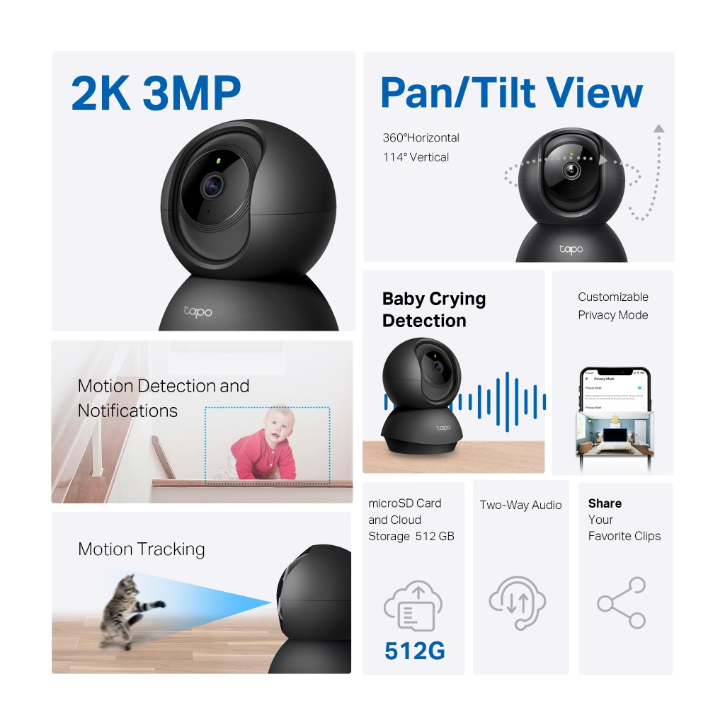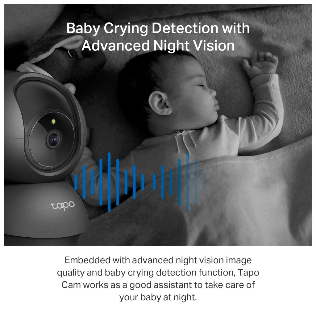 Завдяки вдосконаленому нічному баченню та розпізнаванню дитячого плачу камера Tapo забезпечує цілодобовий догляд за дитиною.