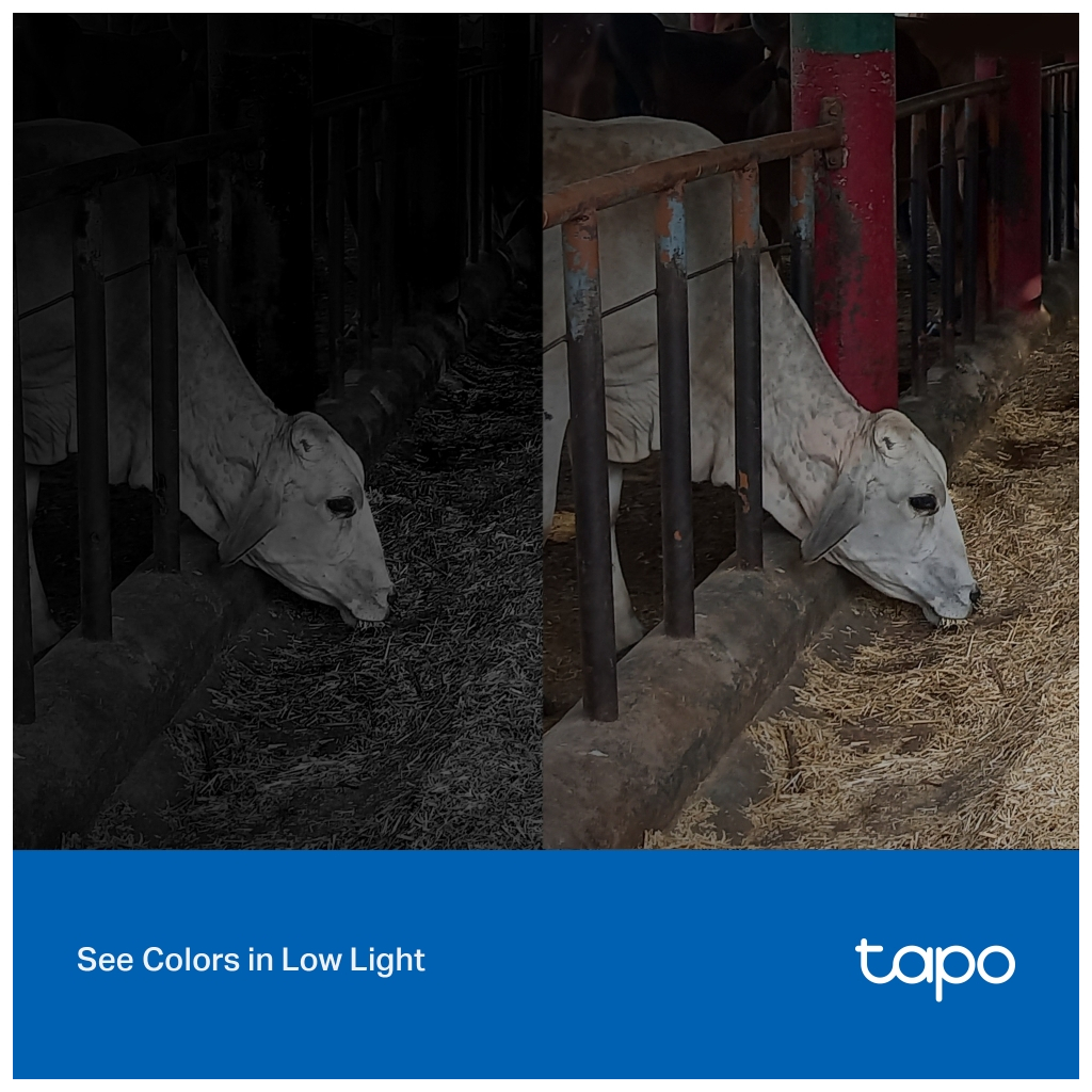 На відміну від чорно-білого зображення звичайних камер, зображення Tapo C320WS кольорове завдяки об’єктиву з високою роздільною здатністю, через який проходить більше світла.