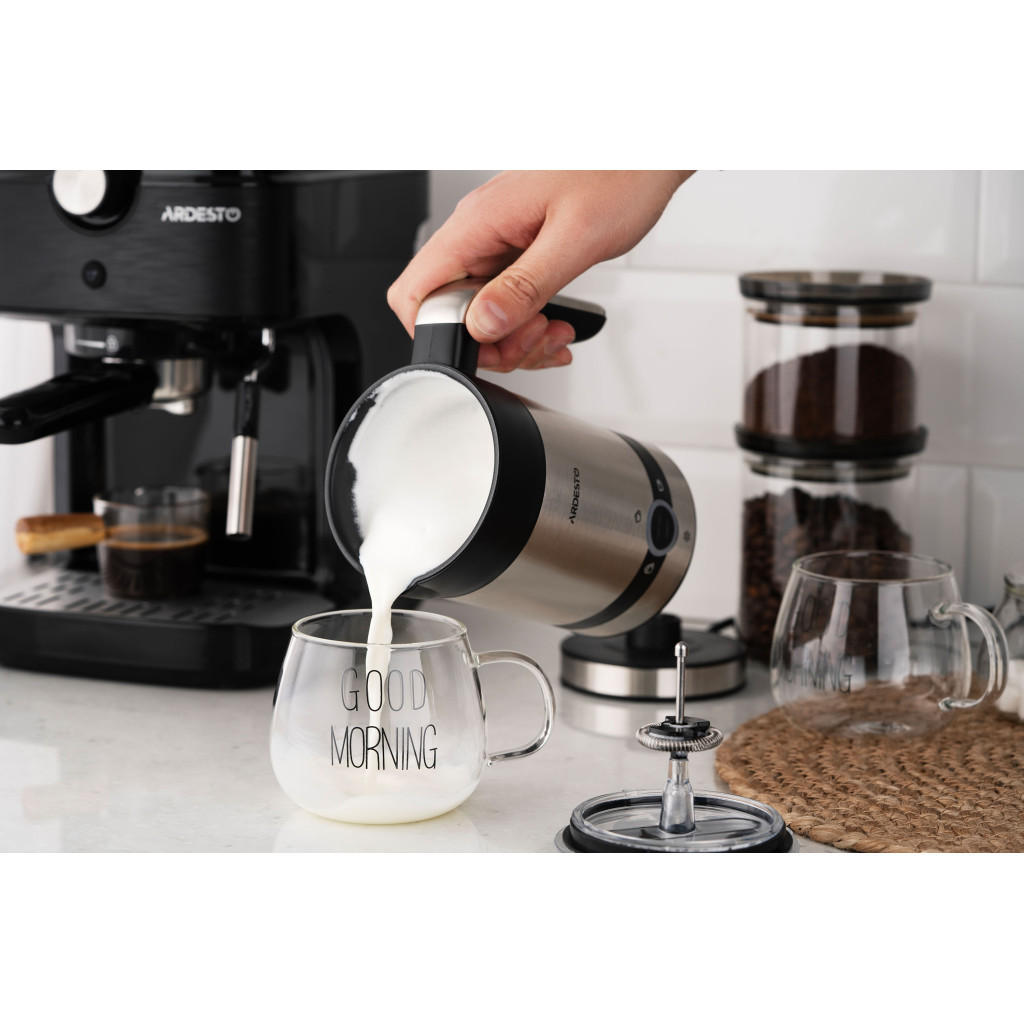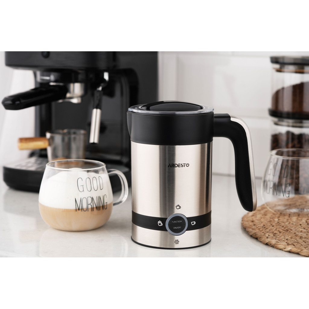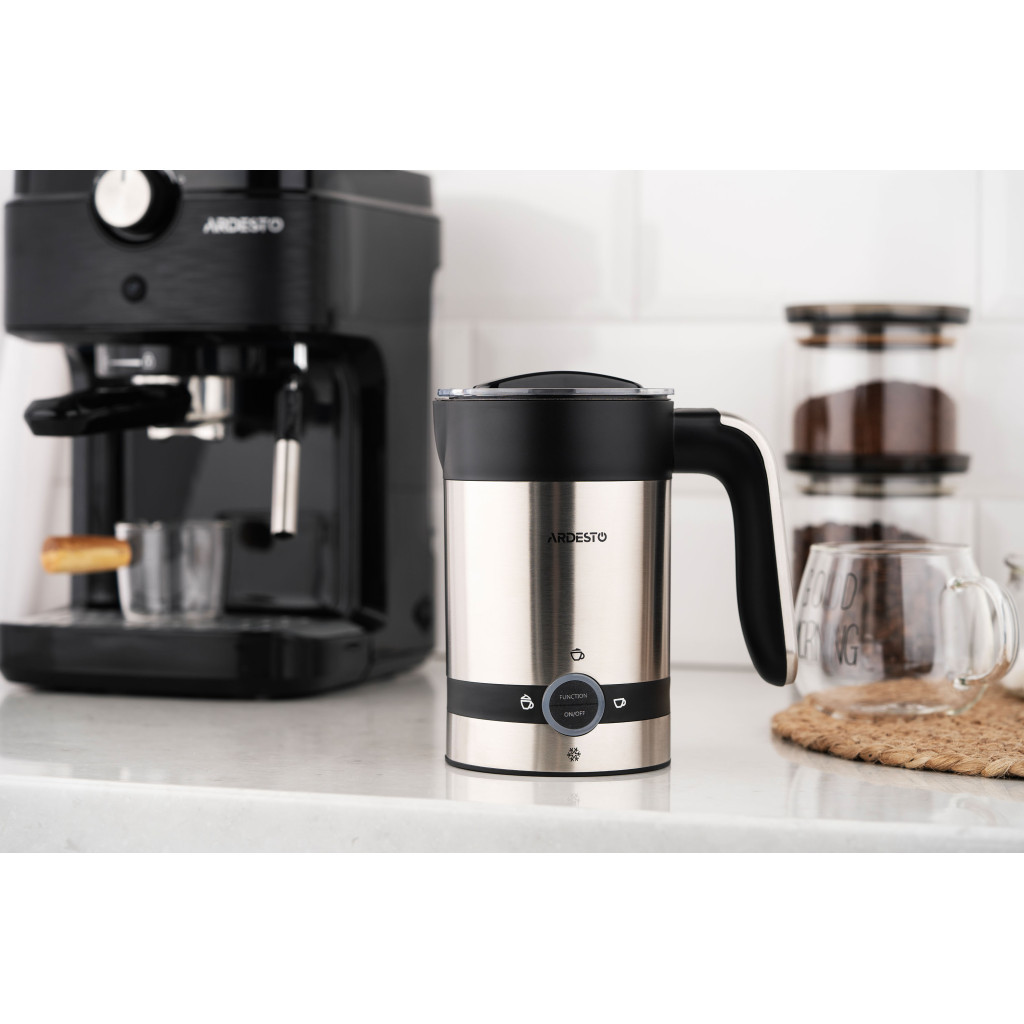 Спінювач молока ARDESTO MBC-D450 – це компактний та ефективний пристрій для приготування стійкої молочної піни для улюблених напоїв. Вироблена з нержавіючої сталі, модель сріблясто-чорного кольору не тільки вдало пасуватиме чи не до будь-якого інтер’єру кухні, але й слугуватиме впродовж тривалого часу. Спінювач вирізняється високою потужністю (450 Вт) – можливість збивати бездоганну піну за лічені хвилини.